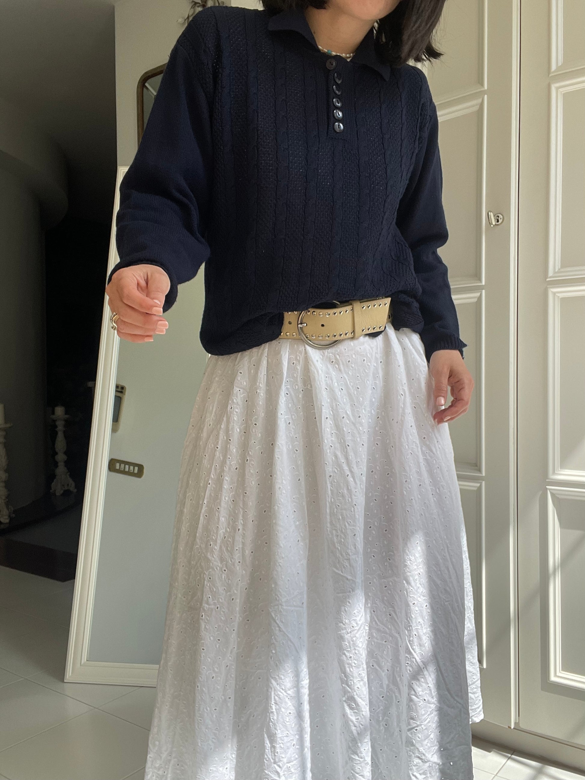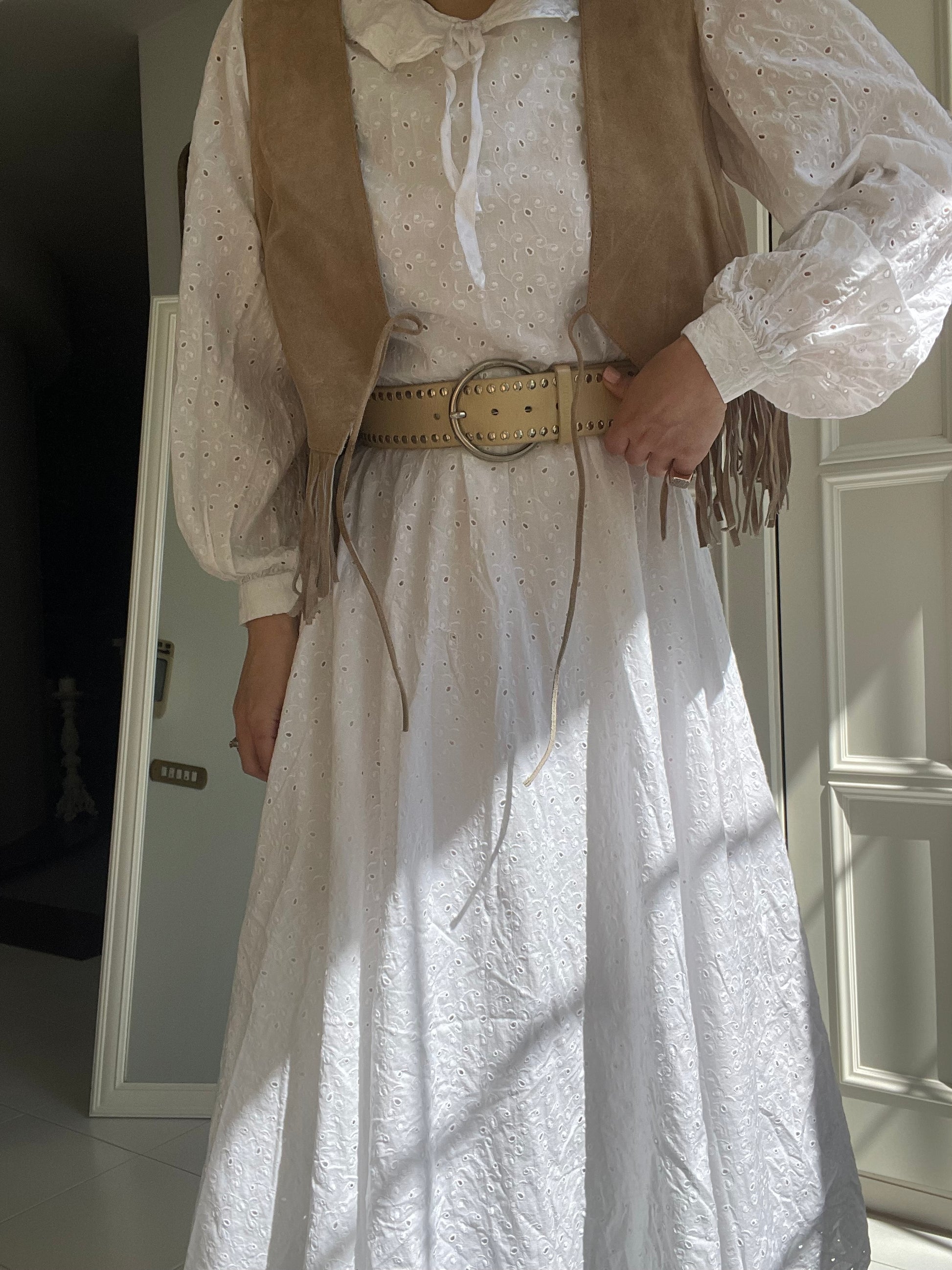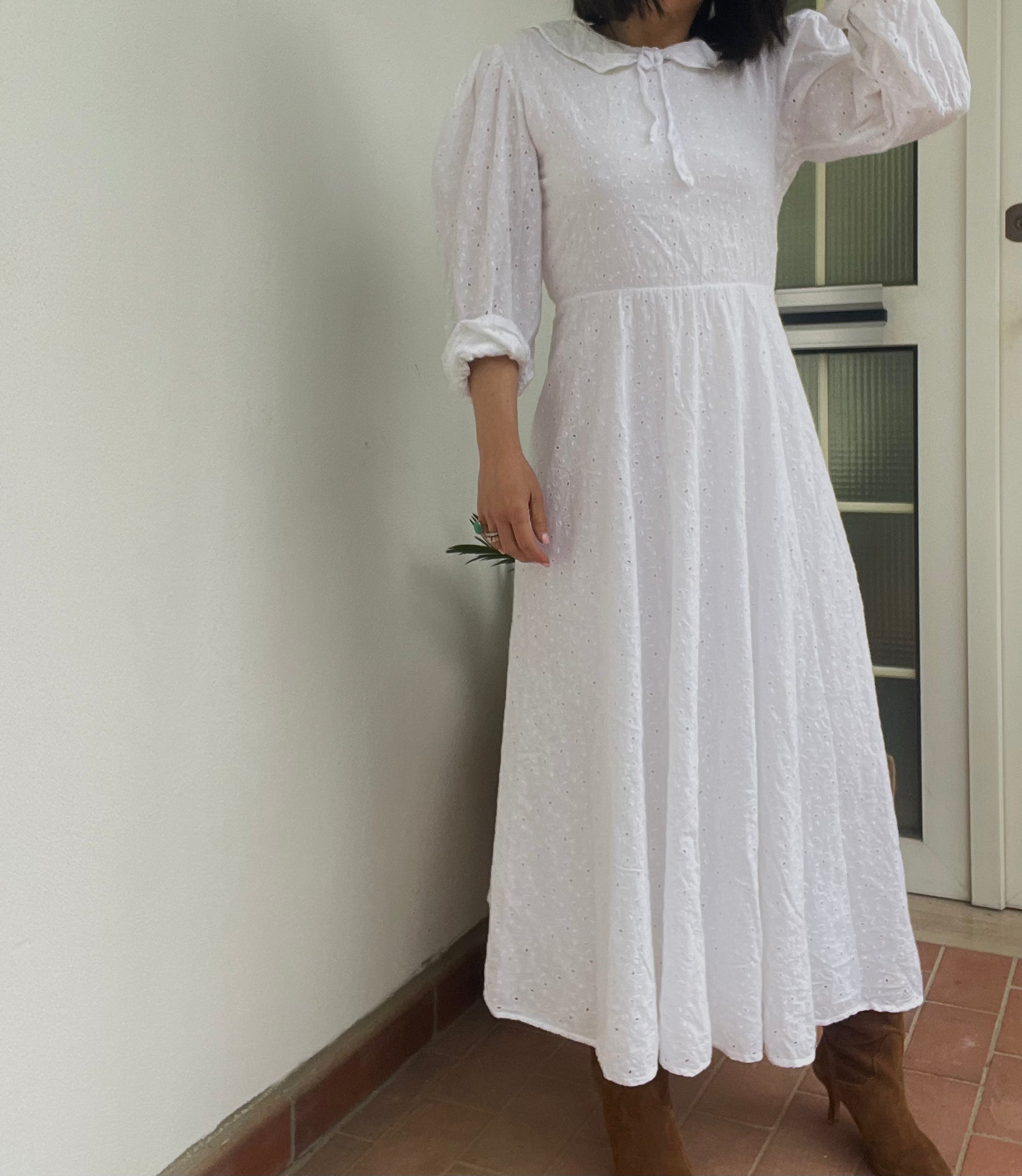 Abito pizzo SanGallo con colletto e gonna a ruota