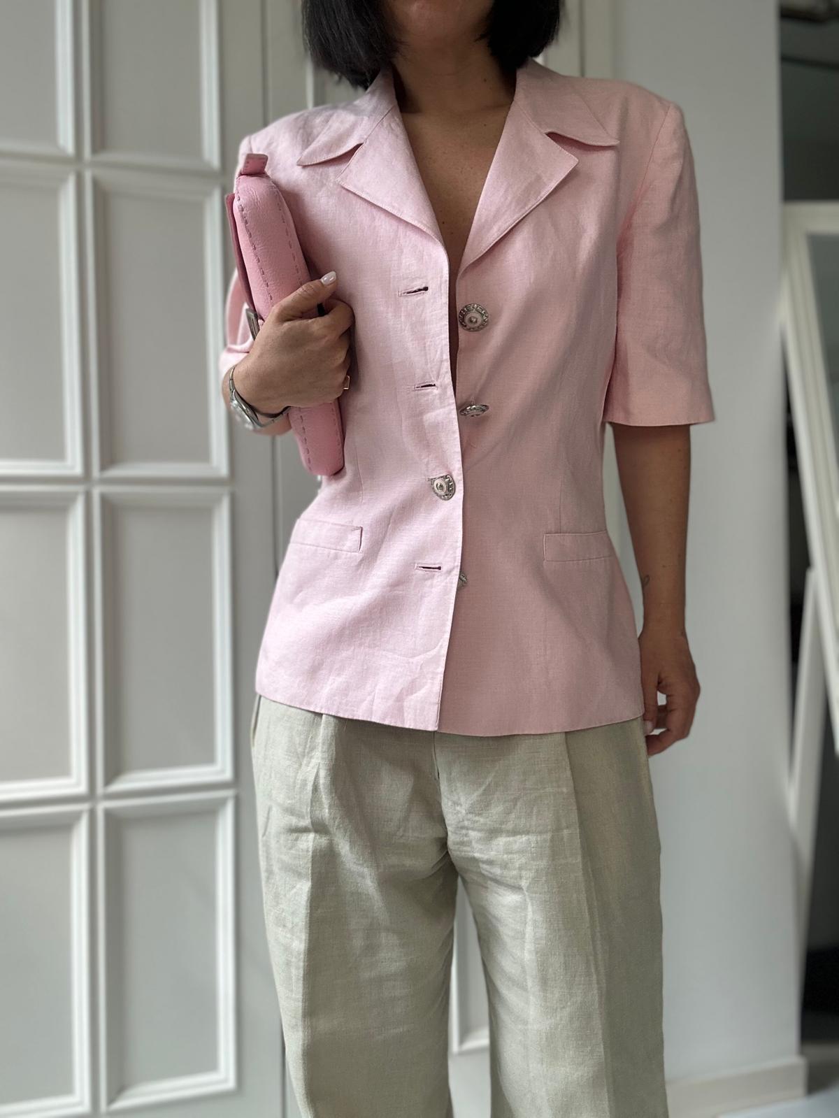 Blazer in puro lino color rosa pastello Luisa Spagnoli,con grandi bottoni argemto