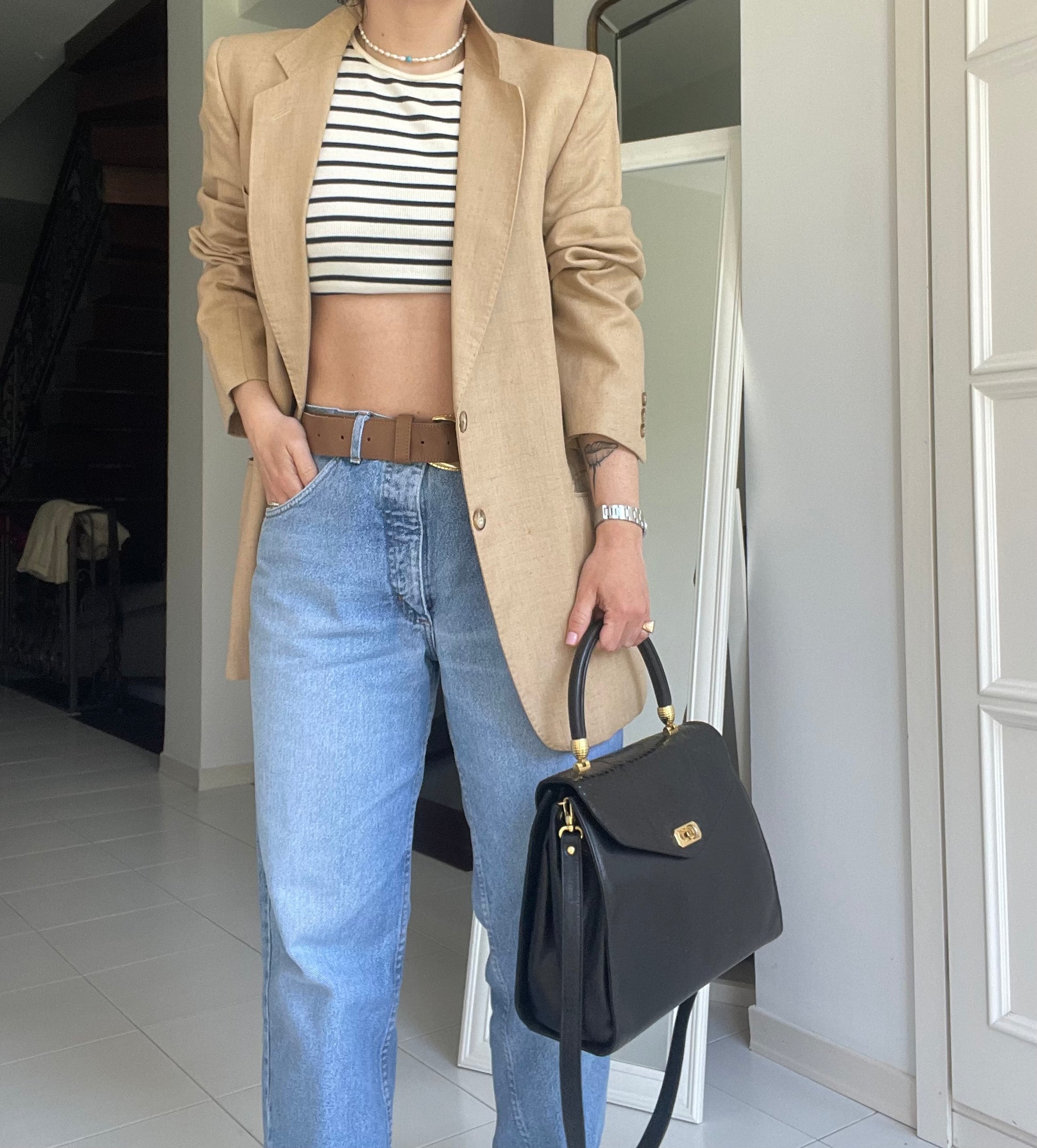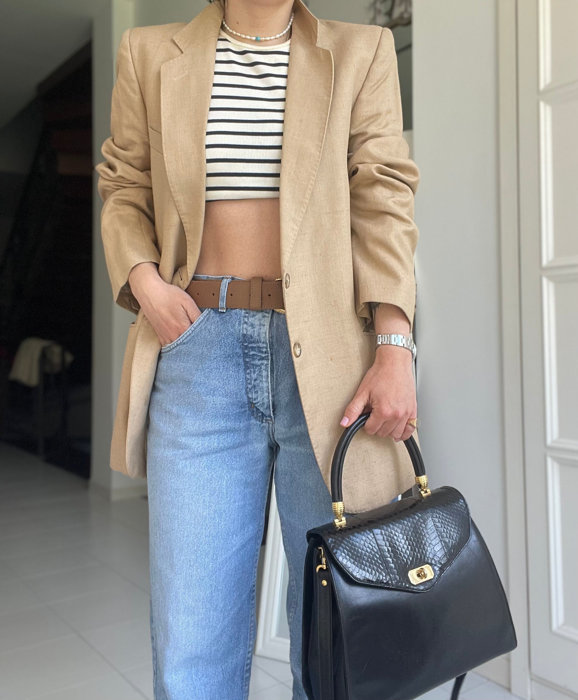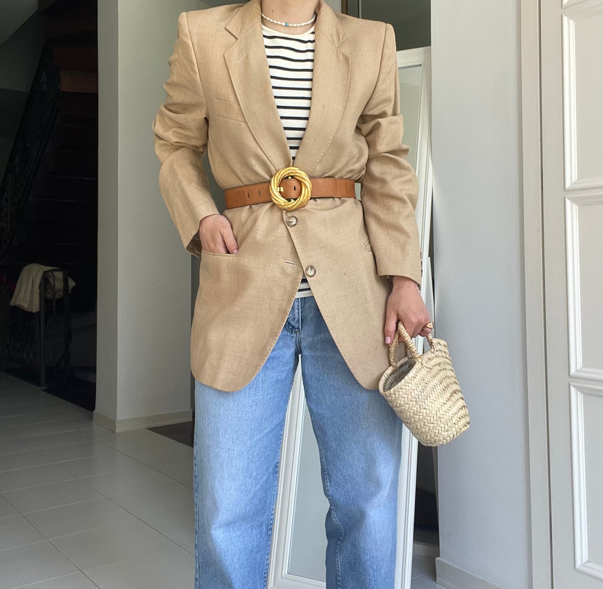 Blazer vintage in puro lino,colore beige