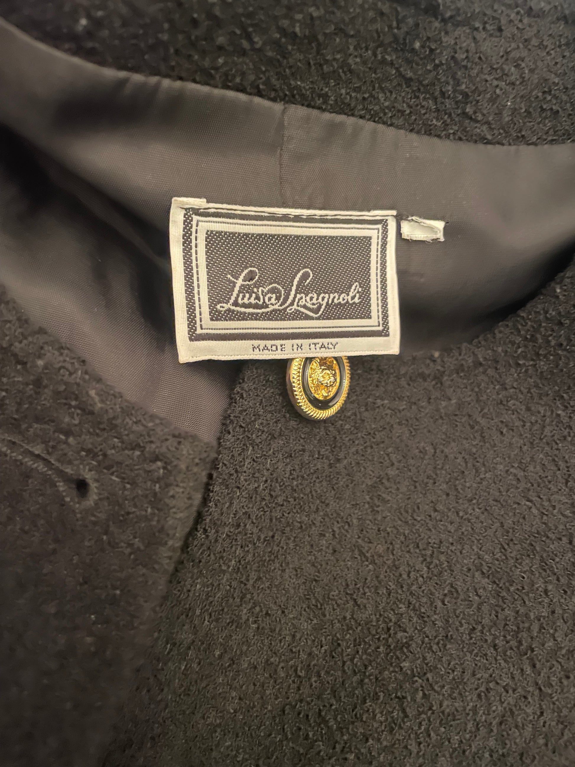 Blazer vintage colore nero Luisa Spagnoli in lana bouclé con bottoni oro…. Fodera in viscosa