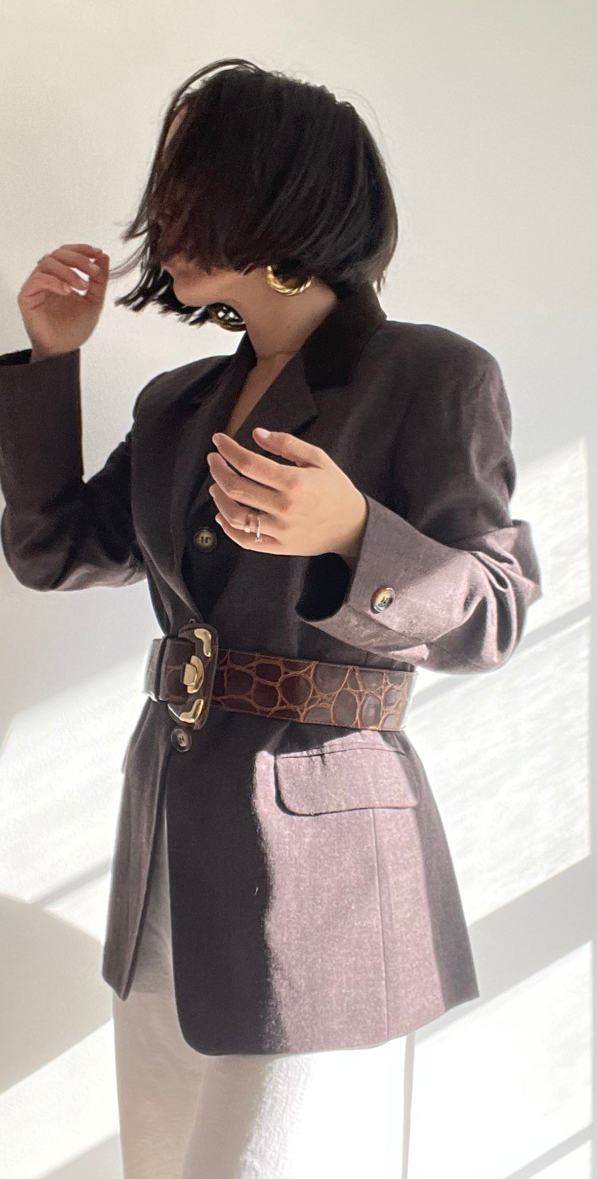 Blazer vintage MARELLA in pura lana vergine leggera color cioccolato.