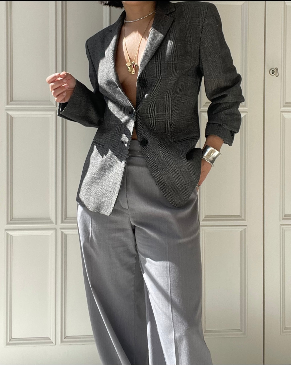 Blazer Max Mara vintage in 100% lana grigio principe di Galles …