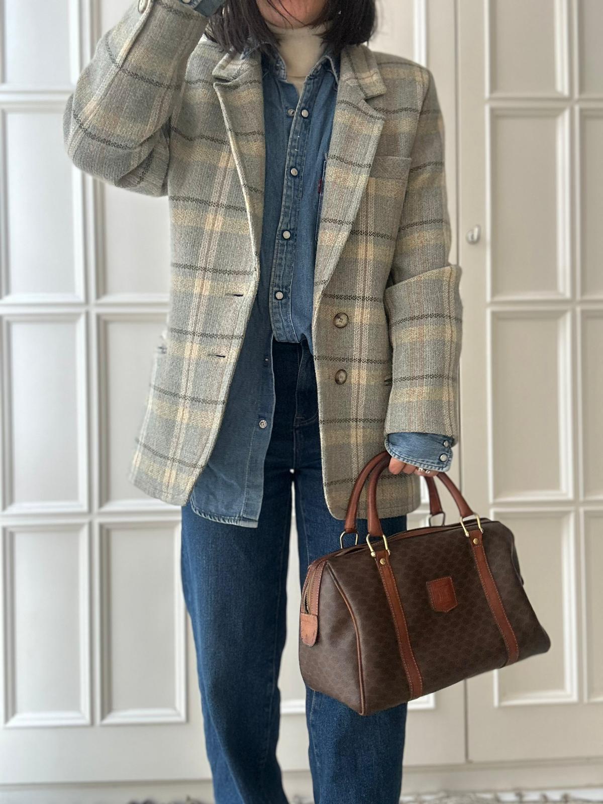 Blazer vintage in misto cashmere,con fantasia quadrettoni