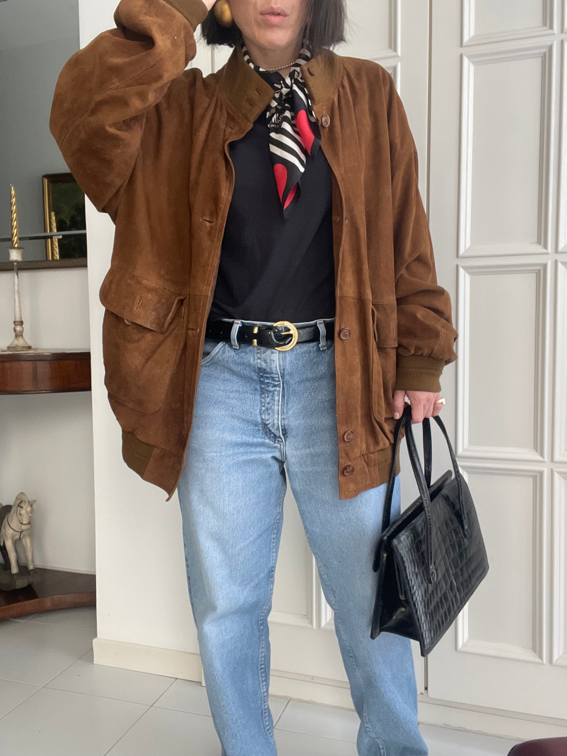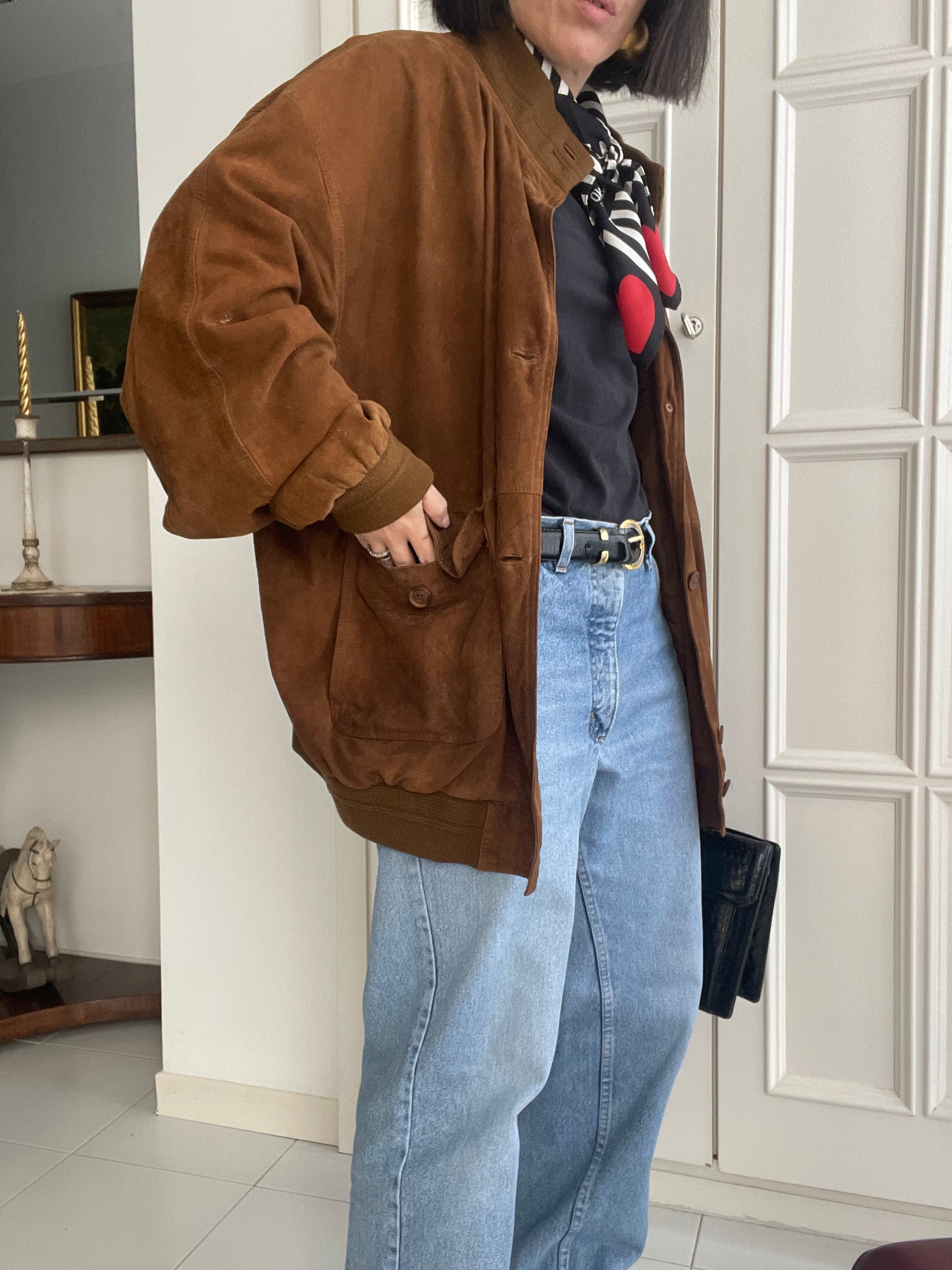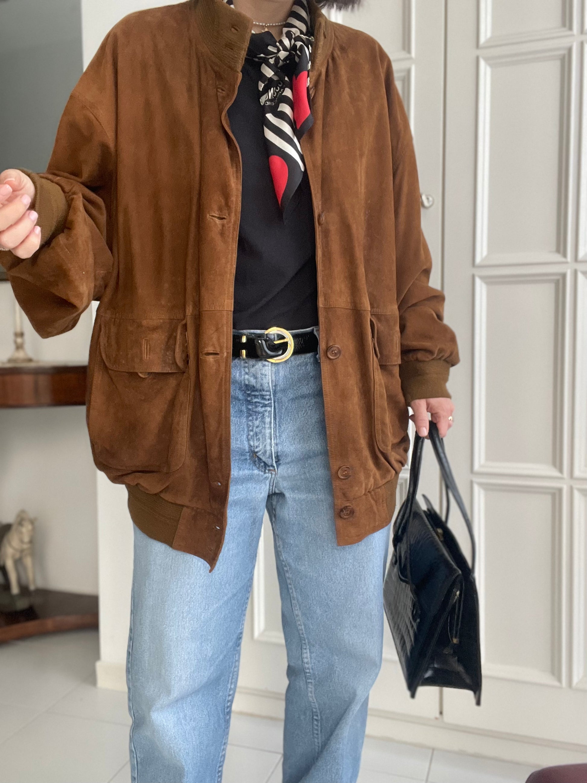 Bomber in vera pelle di camoscio