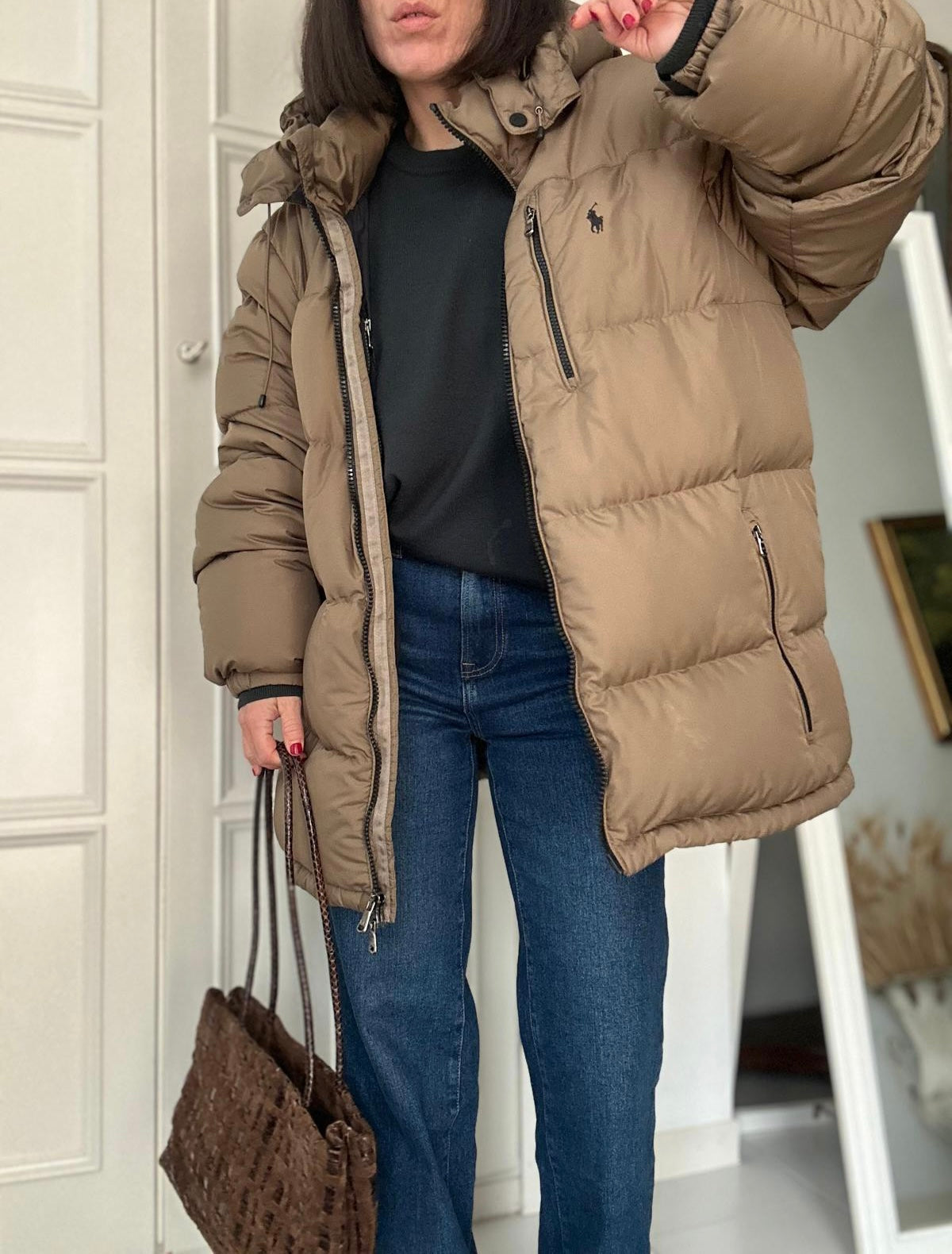 Bomber over size Ralph Lauren colore caramello interno in vera piuma …