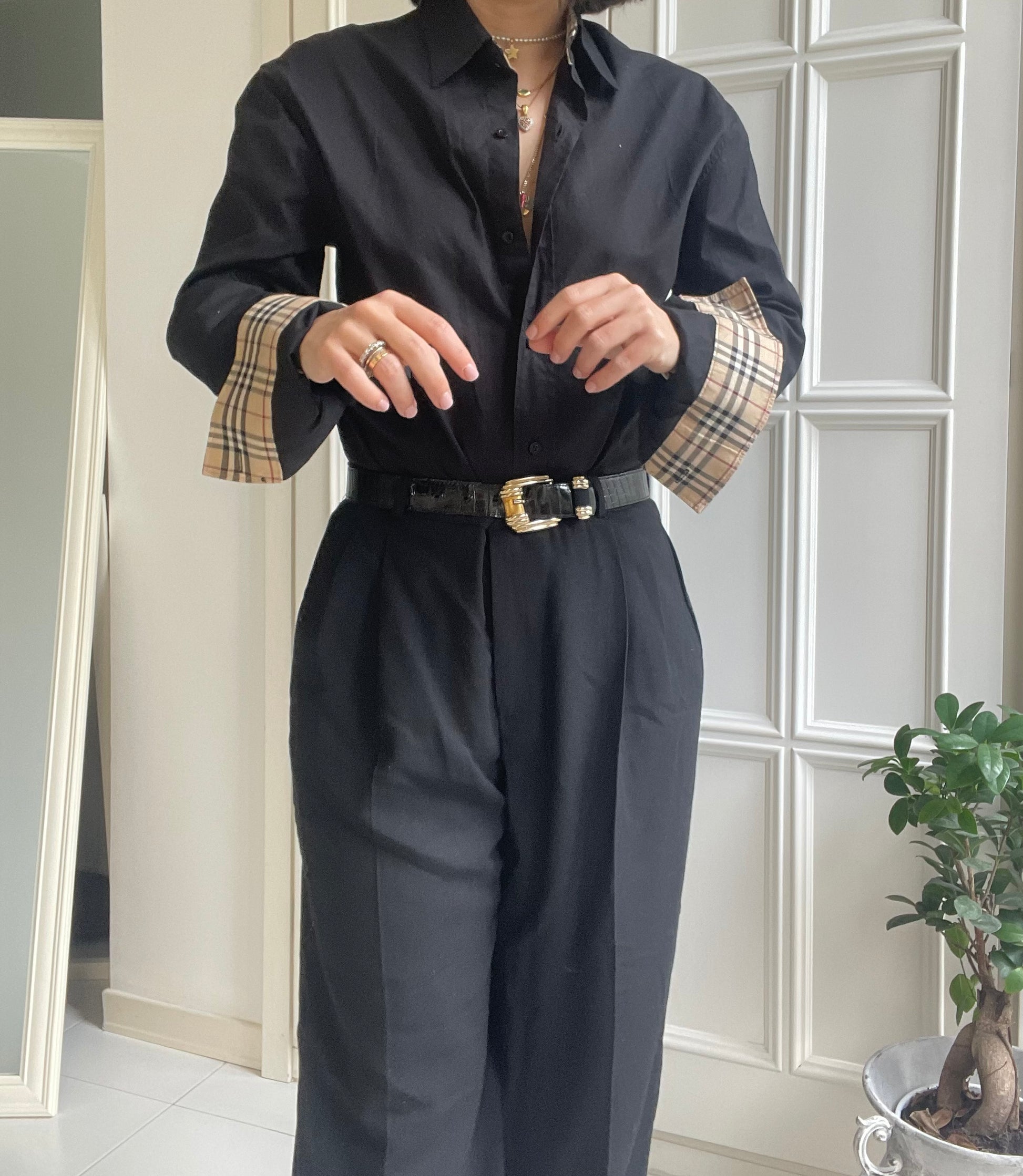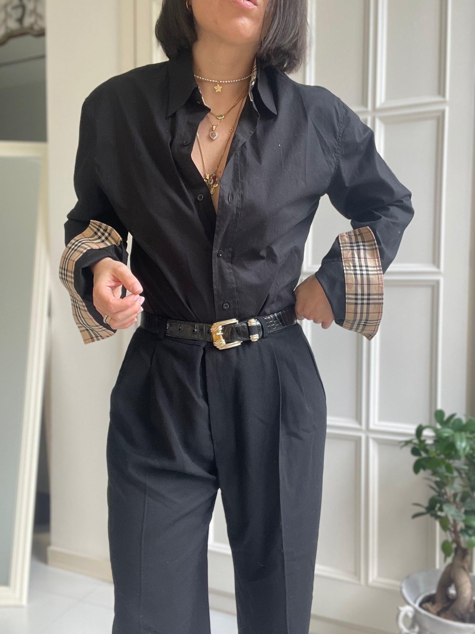 Camicia Burberrys vintage colore nero con profili nel tipico check