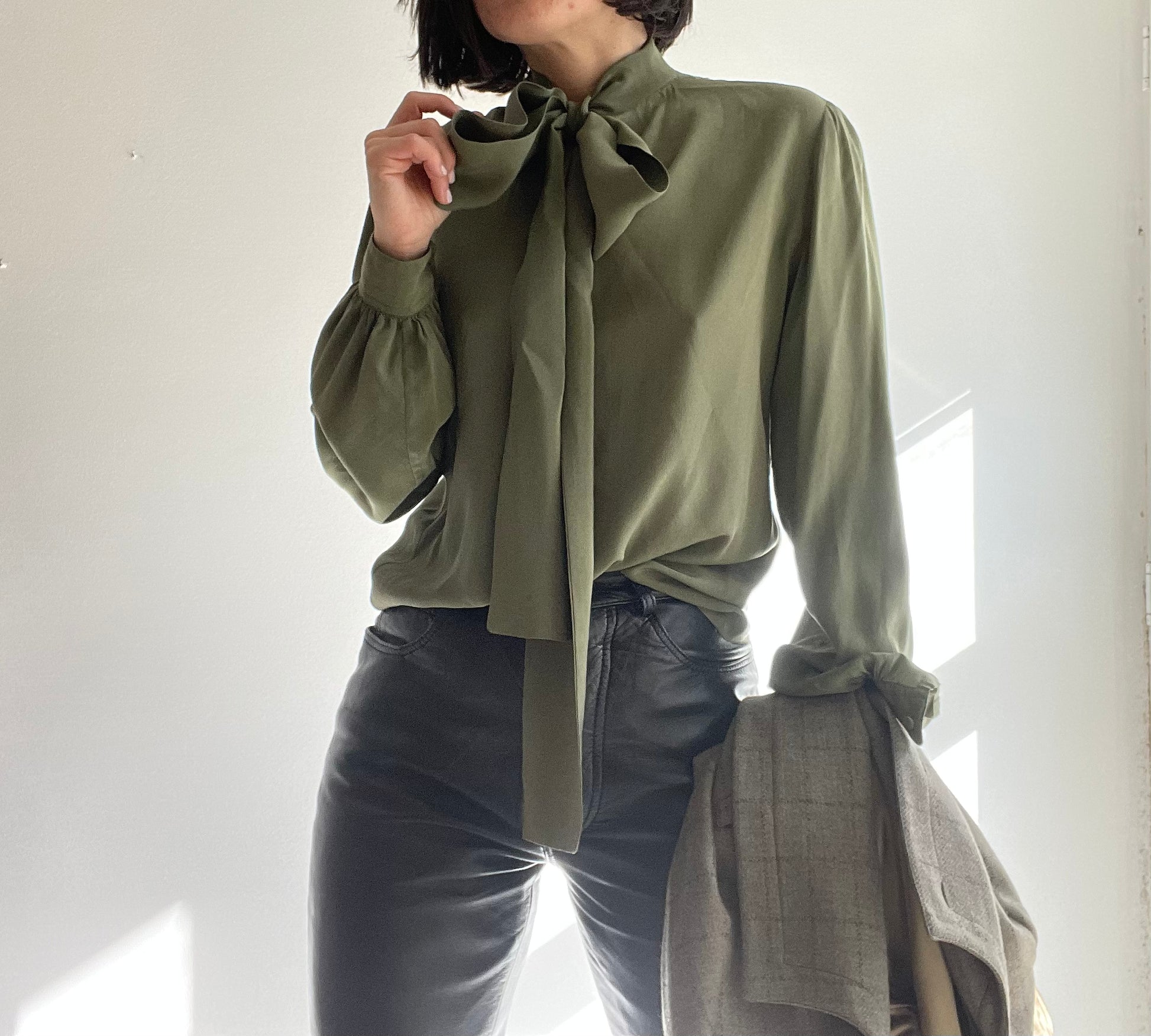 Camicia vintage in pura seta color verde Luisa Spagnoli