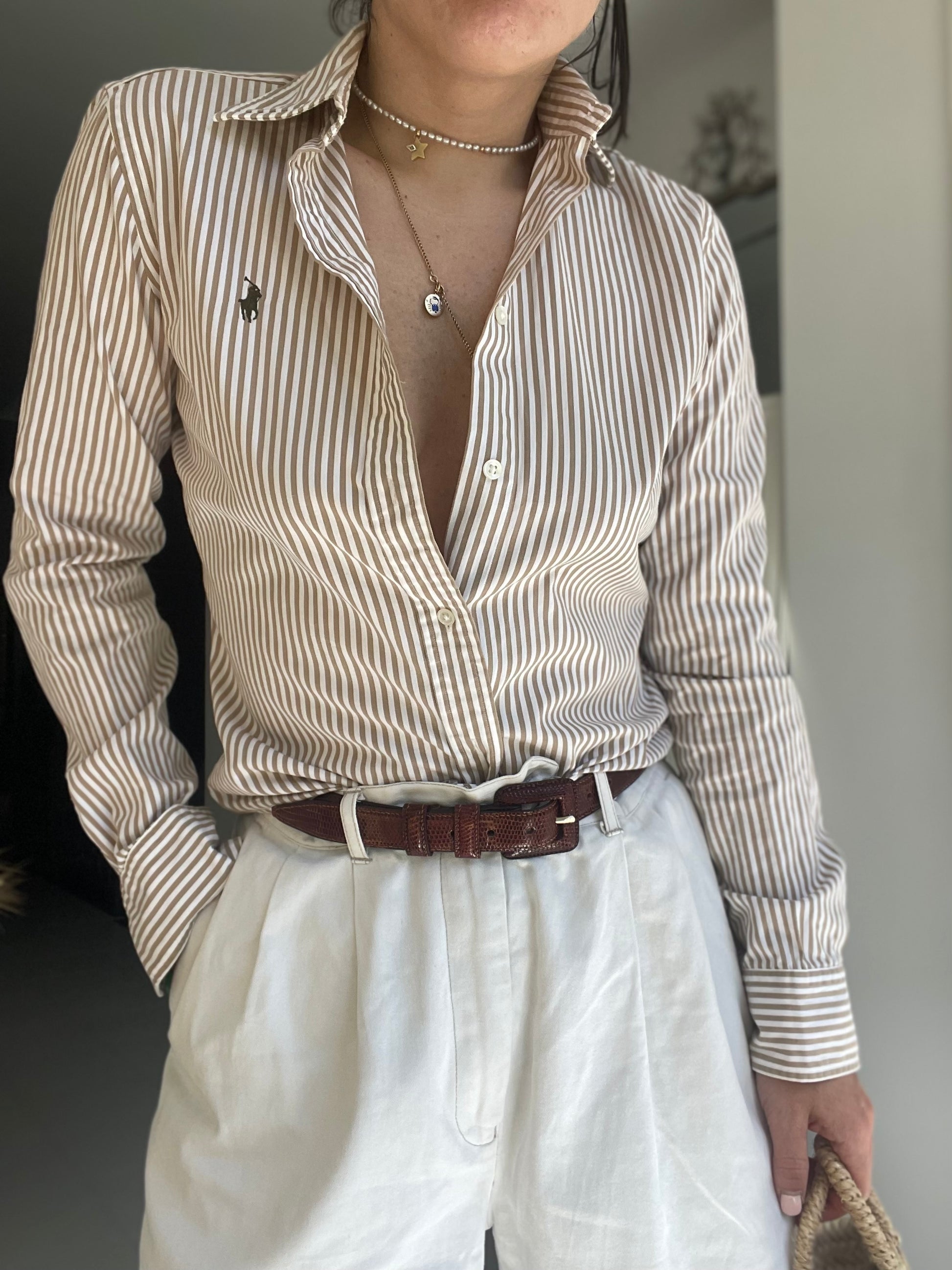 Camicia vintage RALPH LAUREN in cotone con roche bianche e beige