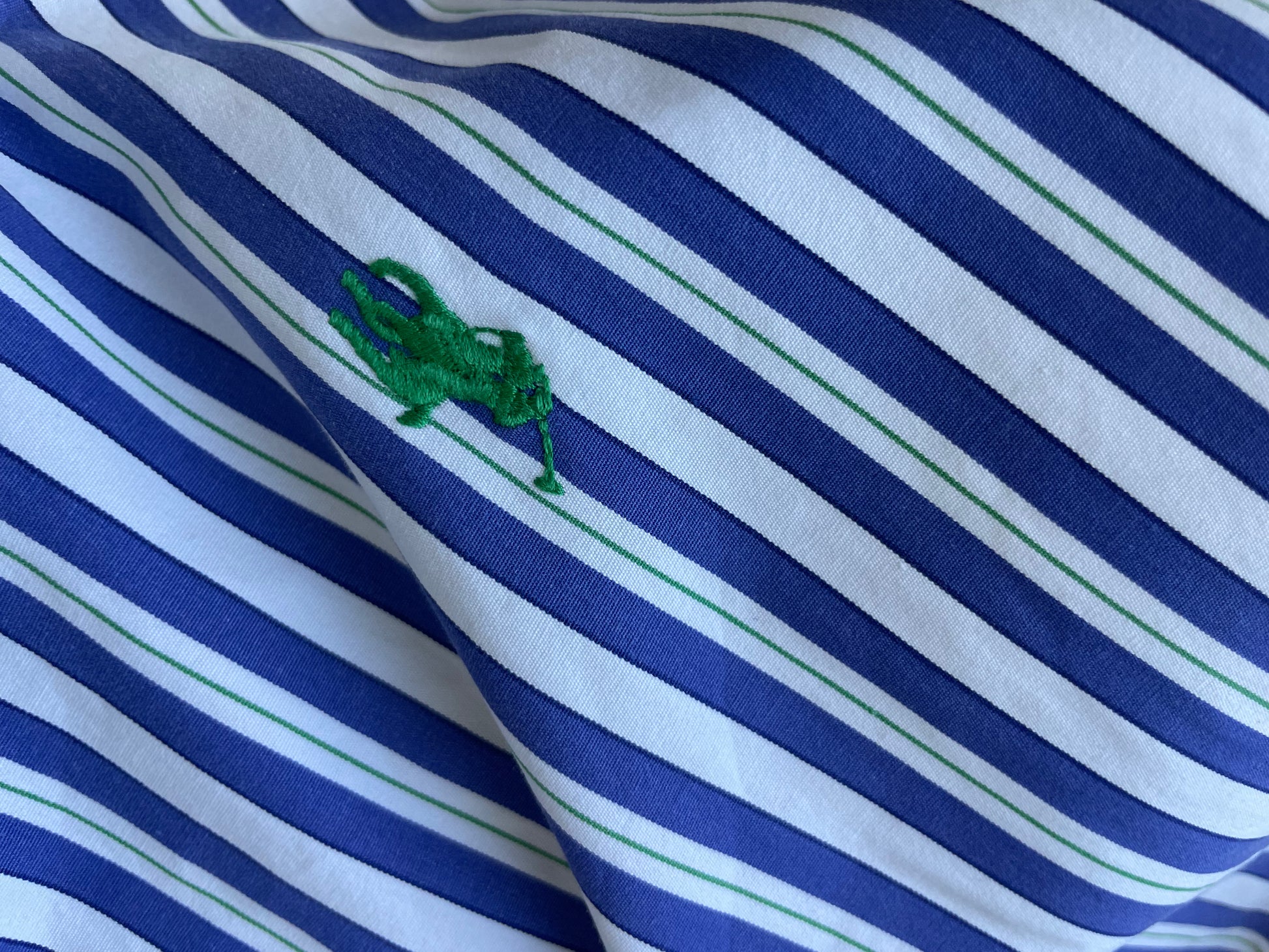 Camicia vintage RALPH LAUREN in cotone sui toni dell’azzurro bianco e verde con cavallino verde