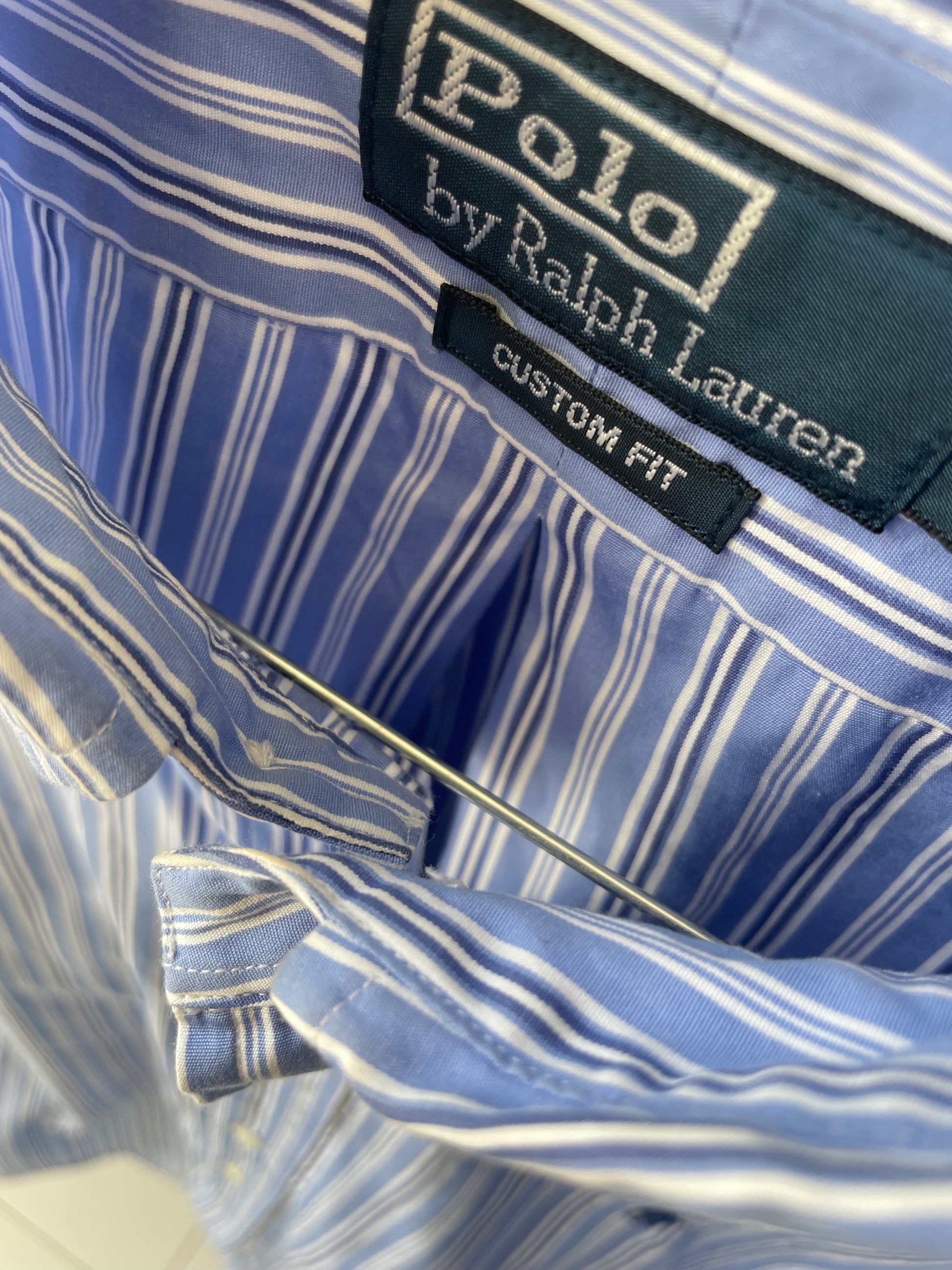 Camicia vintage RALPH LAUREN in cotone con righe sui toni del blu e dell’azzurro