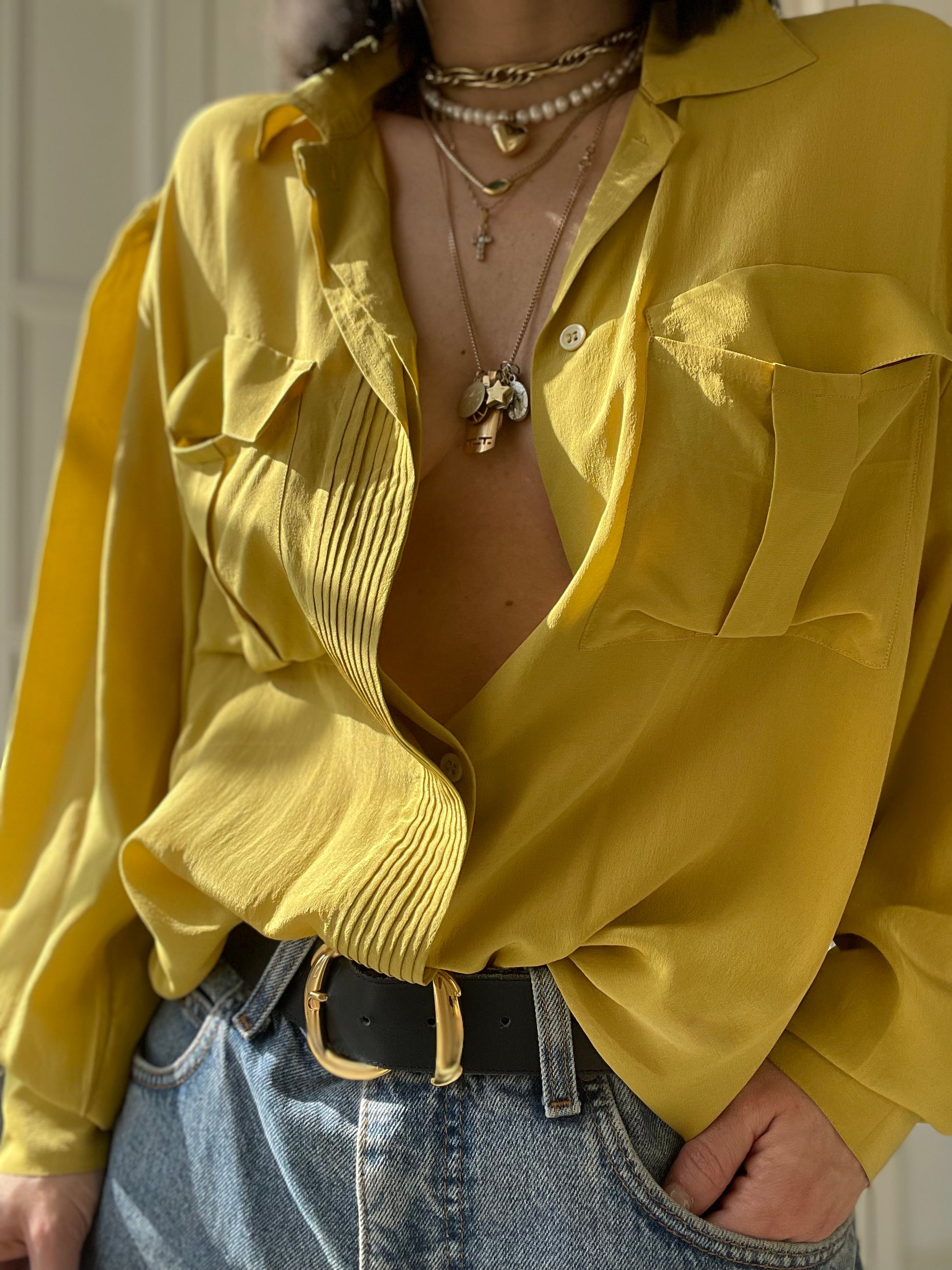 Camicia vintage in pura seta color ocra