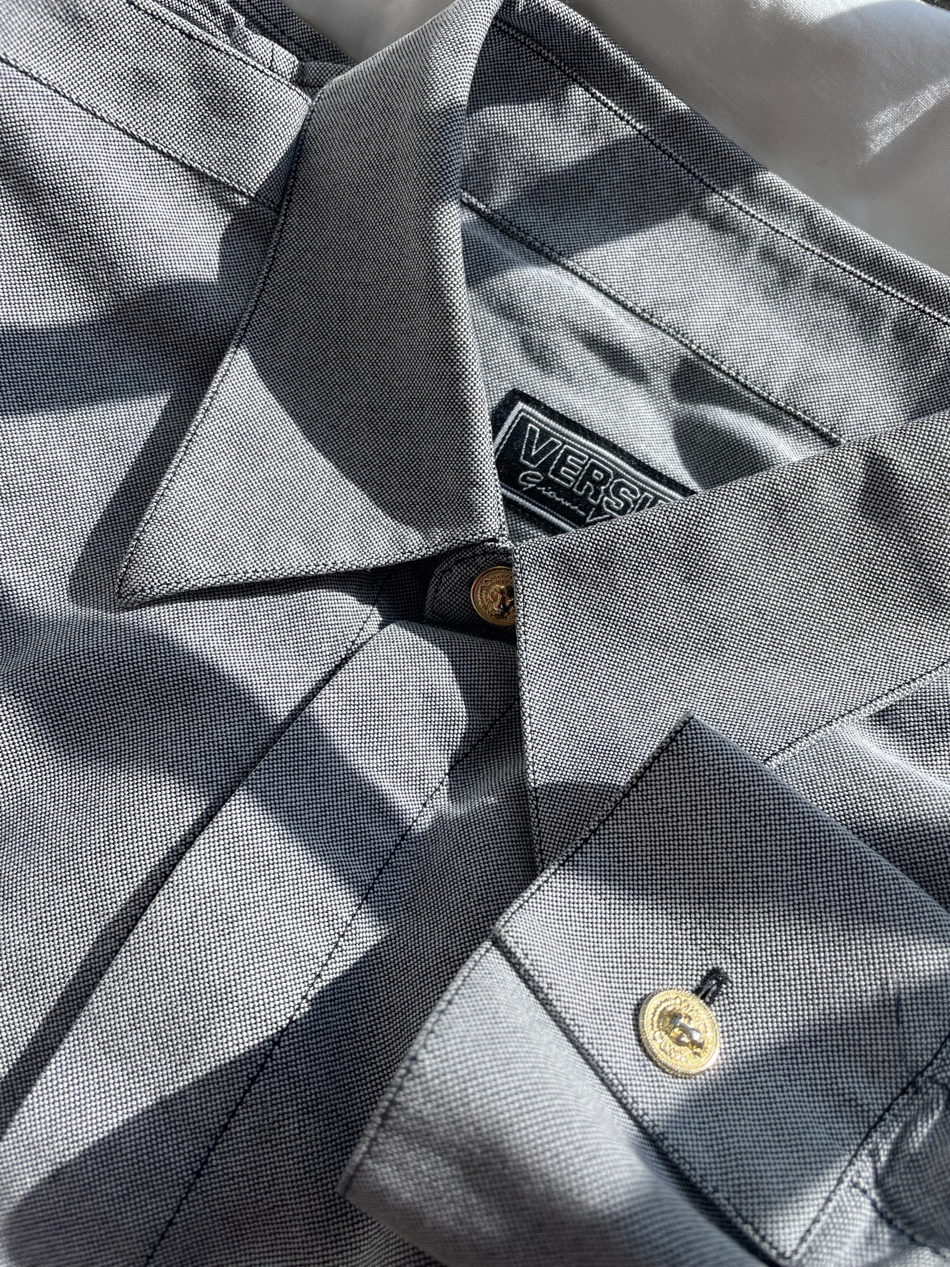Camicia Versace vintage grigia con bottoni oro.Nasce come capo da uomo.