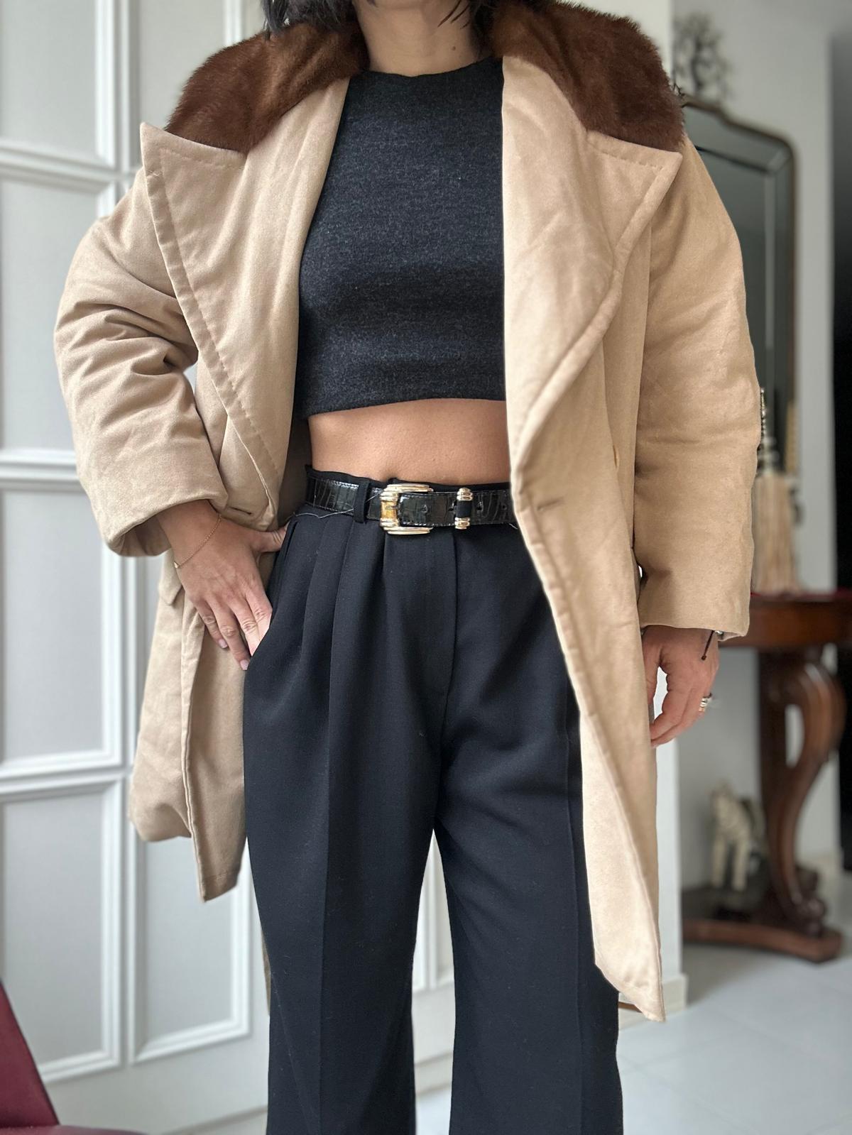 Cappotto vintage Max Mara in piuma con collo in visone