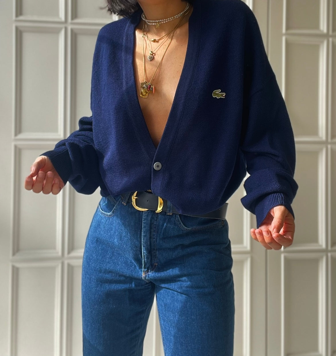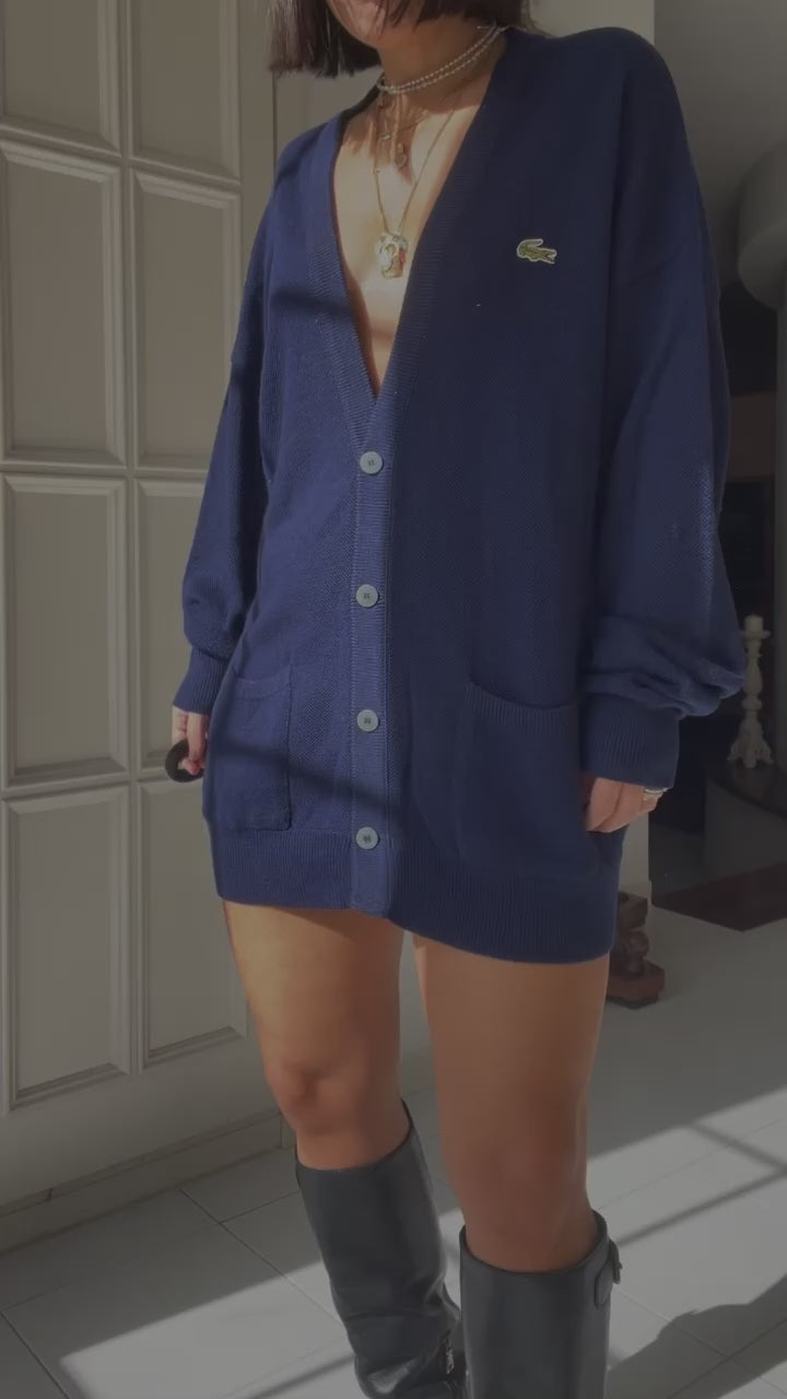 Cardigan vintage Lacoste in pura lana vergine colore blu