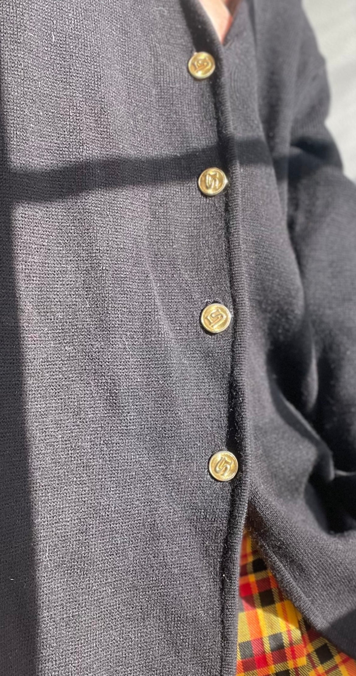 Cardigan vintage LUISA SPAGNOLI in pura lana vergine , colore nero con bottoni oro logati