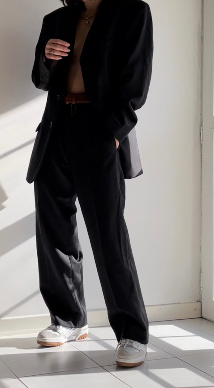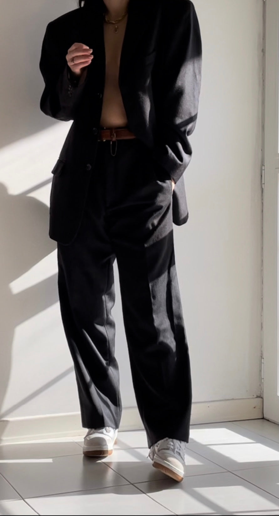 Completo vintage in lana color antracite. Composto da blazer e pantalone.