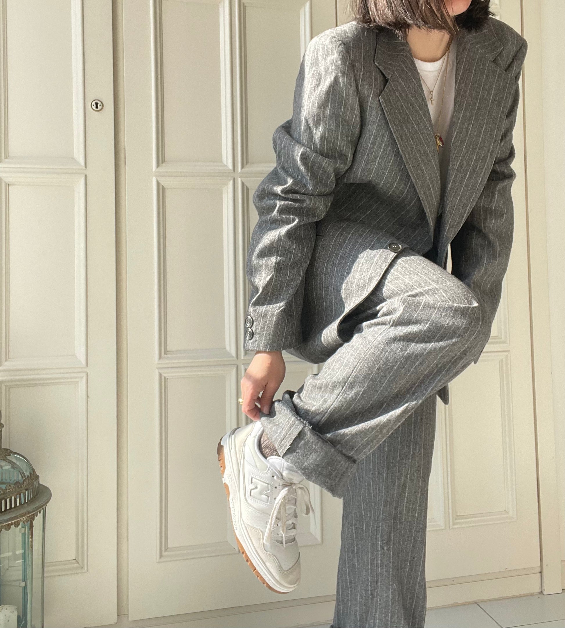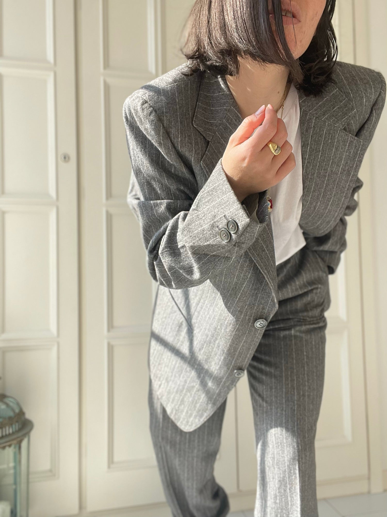 Completo vintage in lana color grigio chiaro. Composto da blazer e pantalone.