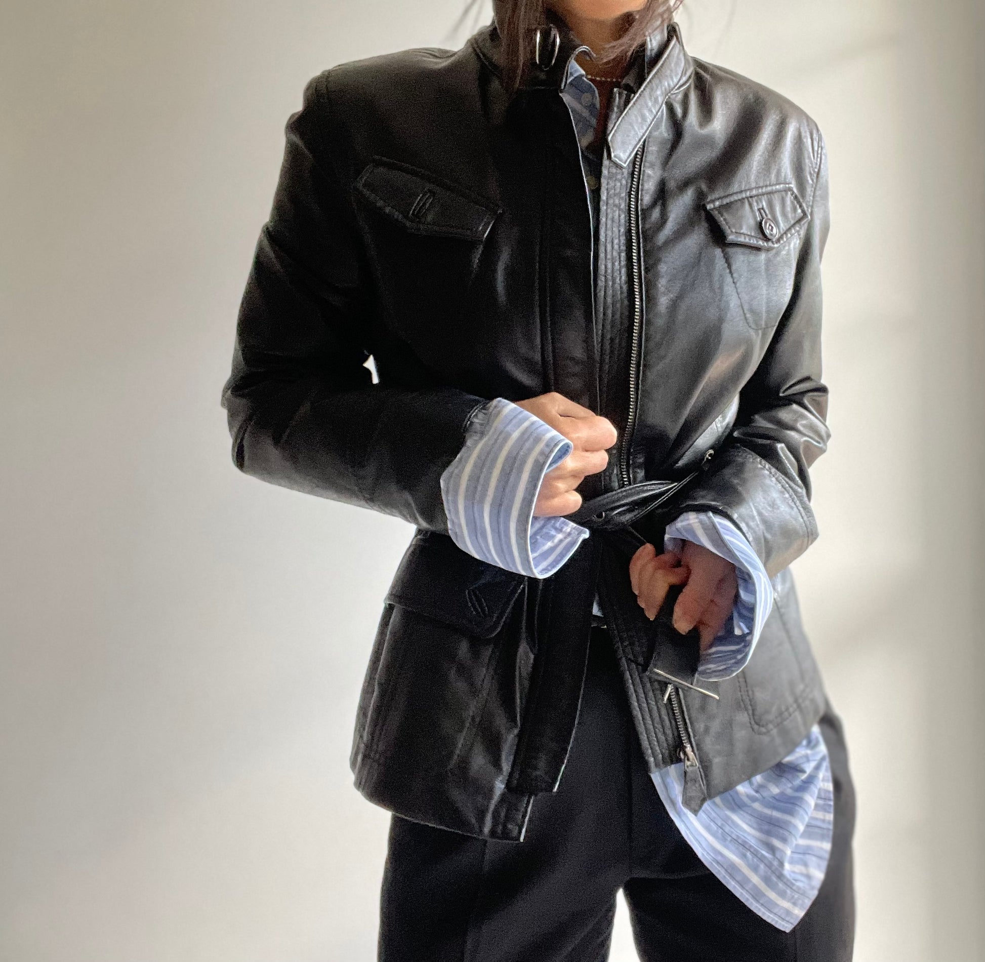 Giacca vintage in vera pelle color nero.