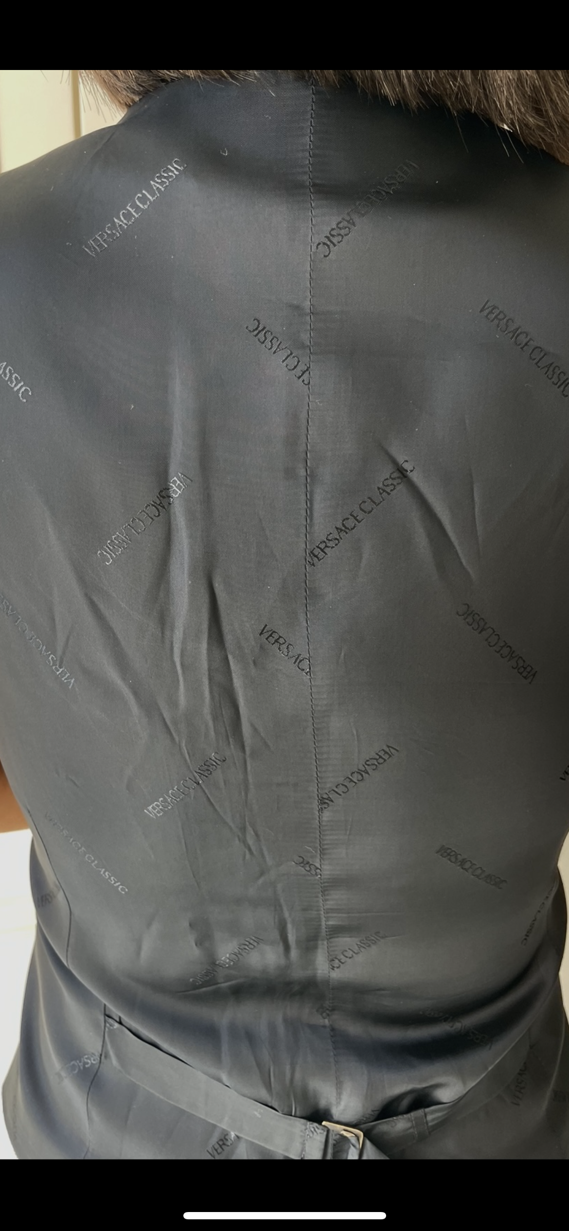 Gilet vintage in lana pettinata e seta colore blu scuro