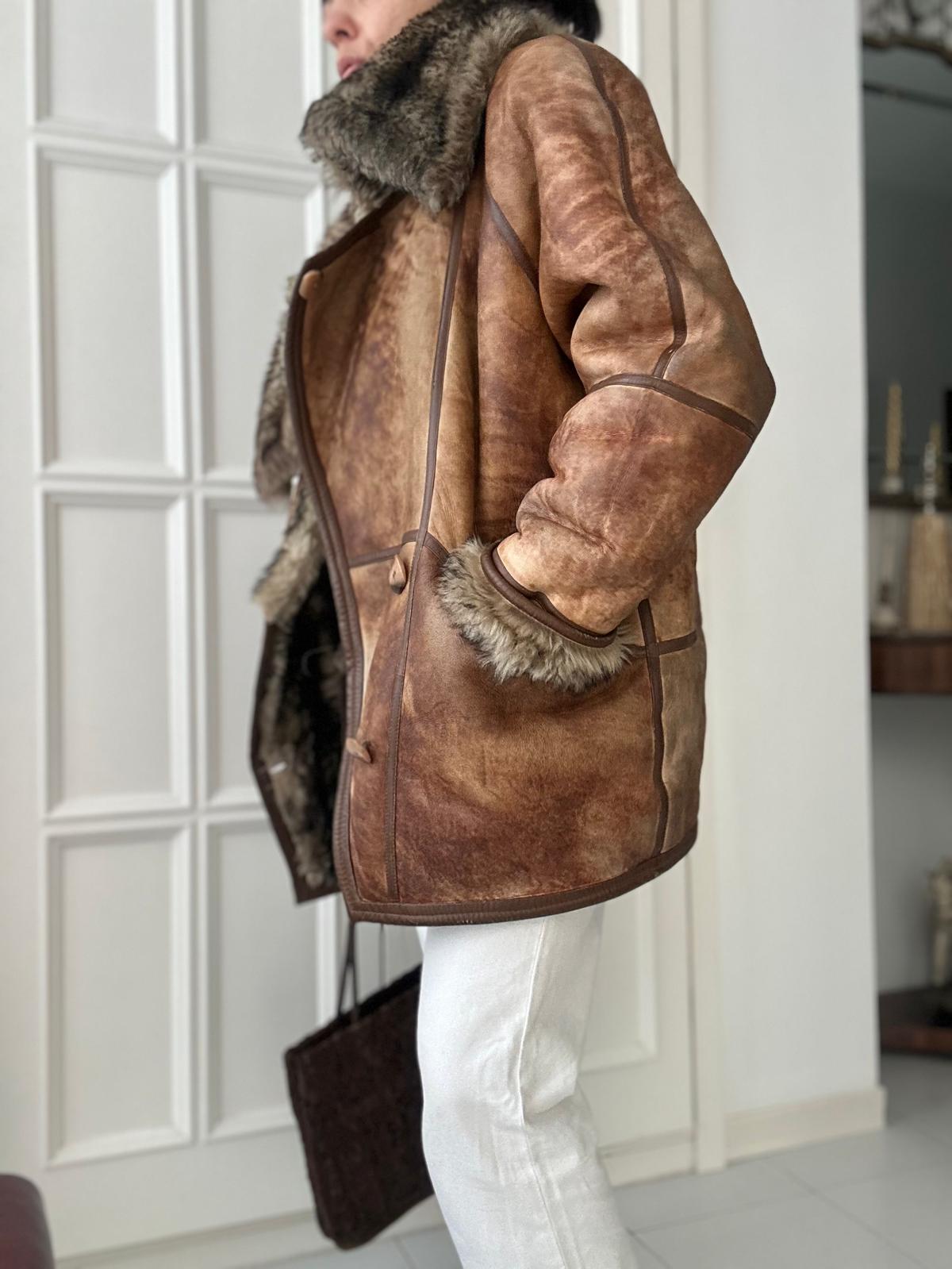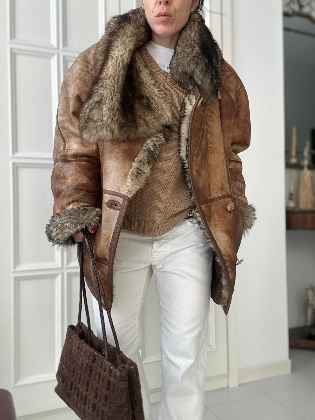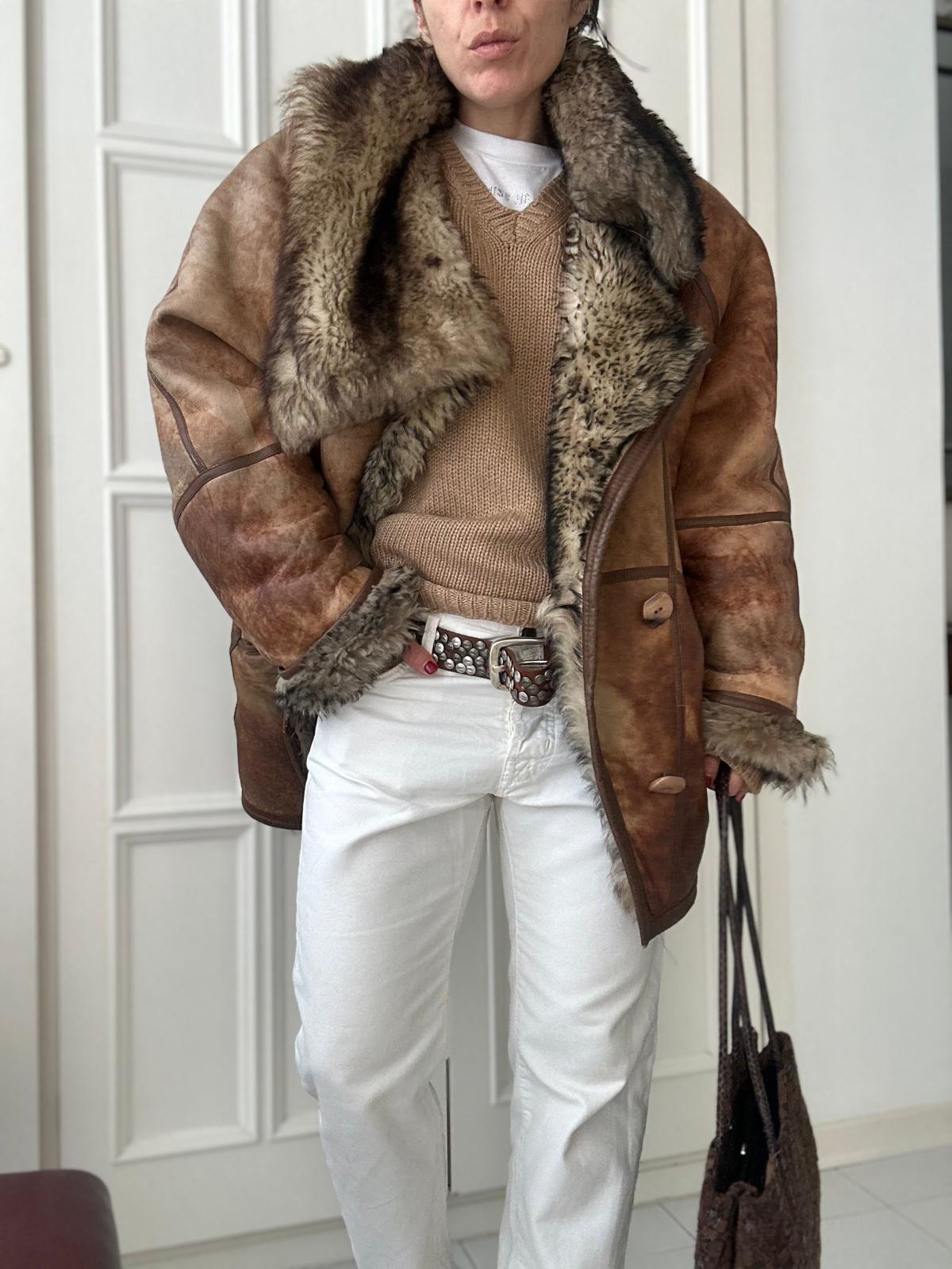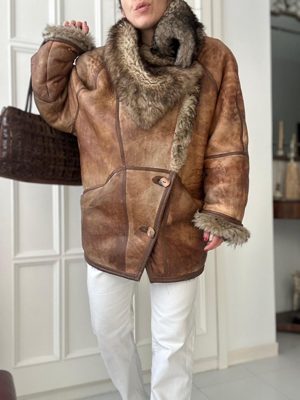 Bellissimo montone con interno a pelo lungo di muflone… esterno marrone effetto used… pazzesco