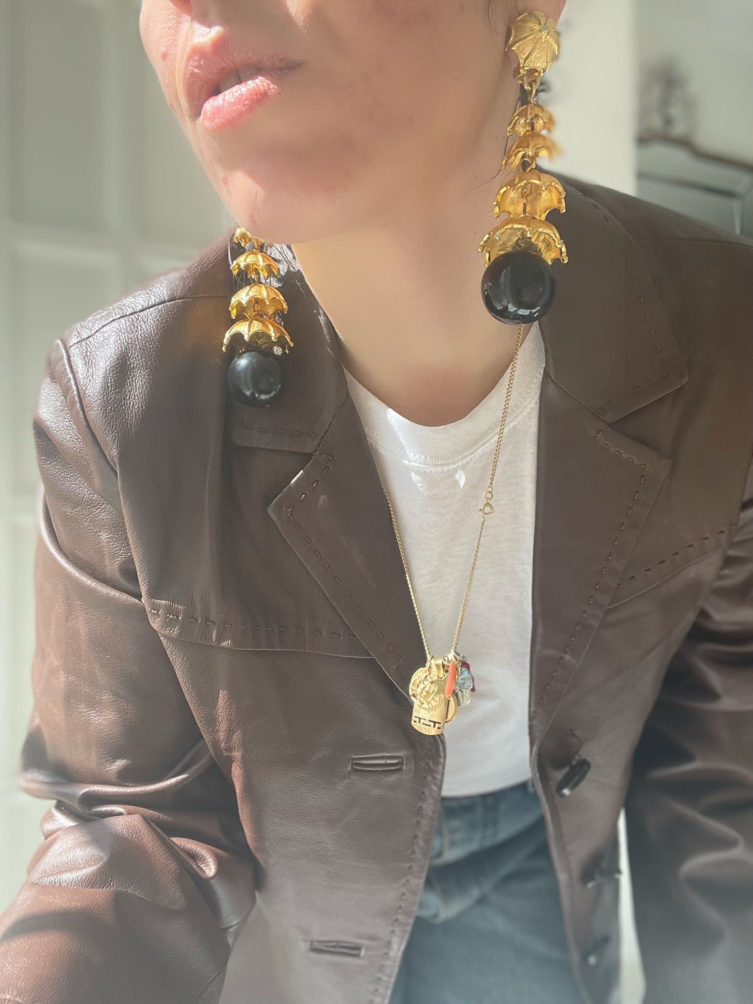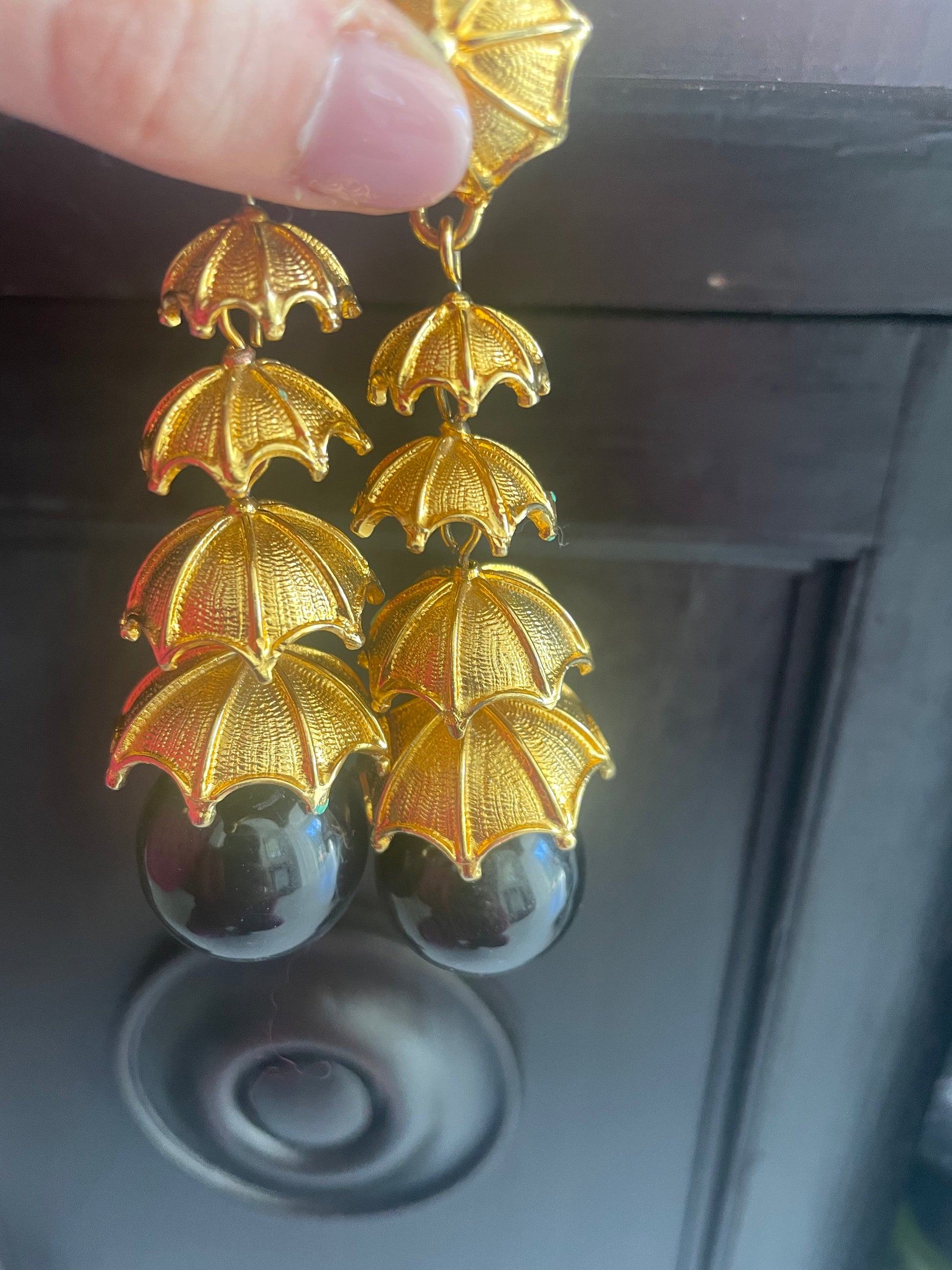 Orecchini vintage placcati oro…hanno una grande perla nera sul fondo presumo di bachelite.