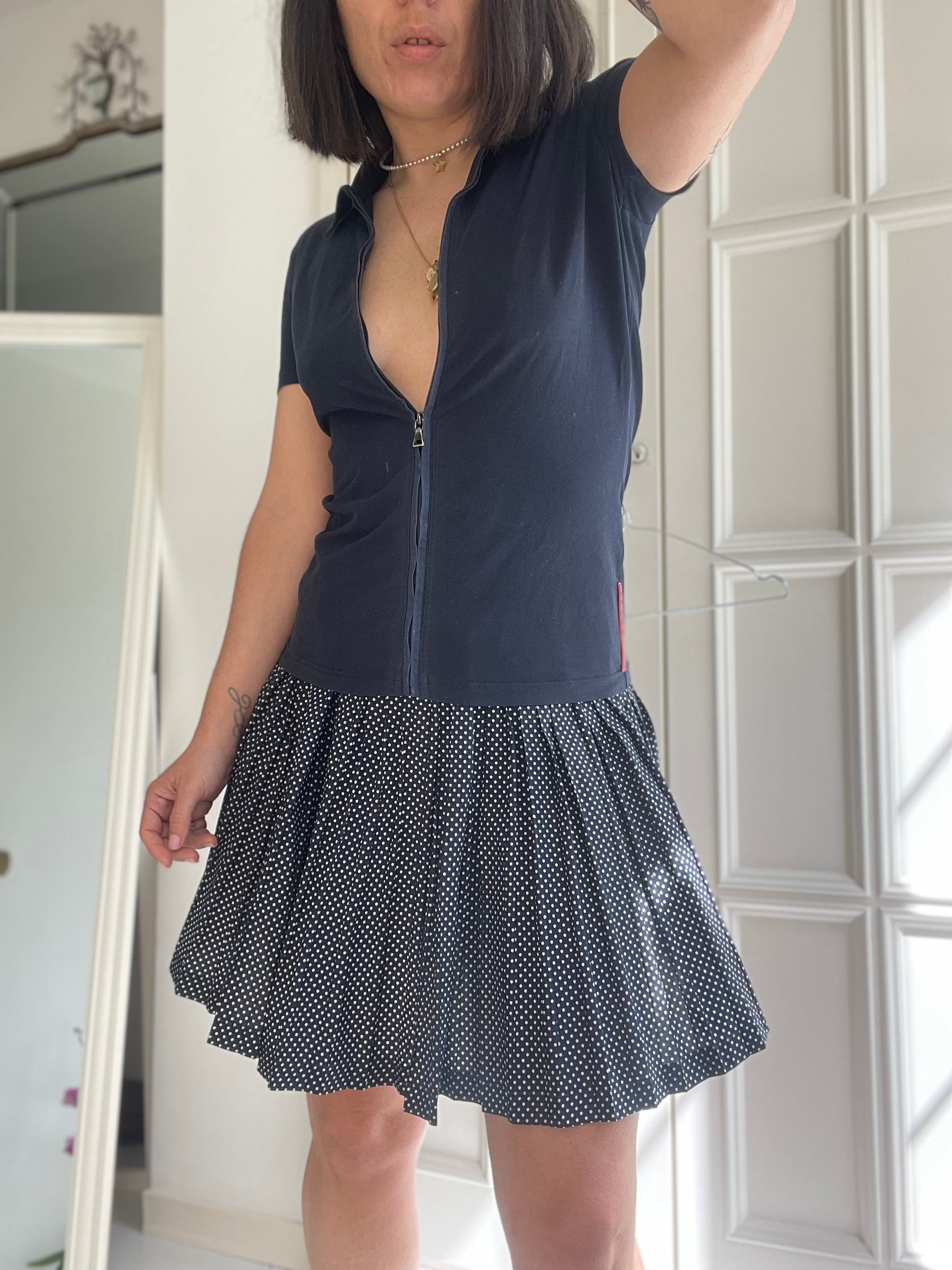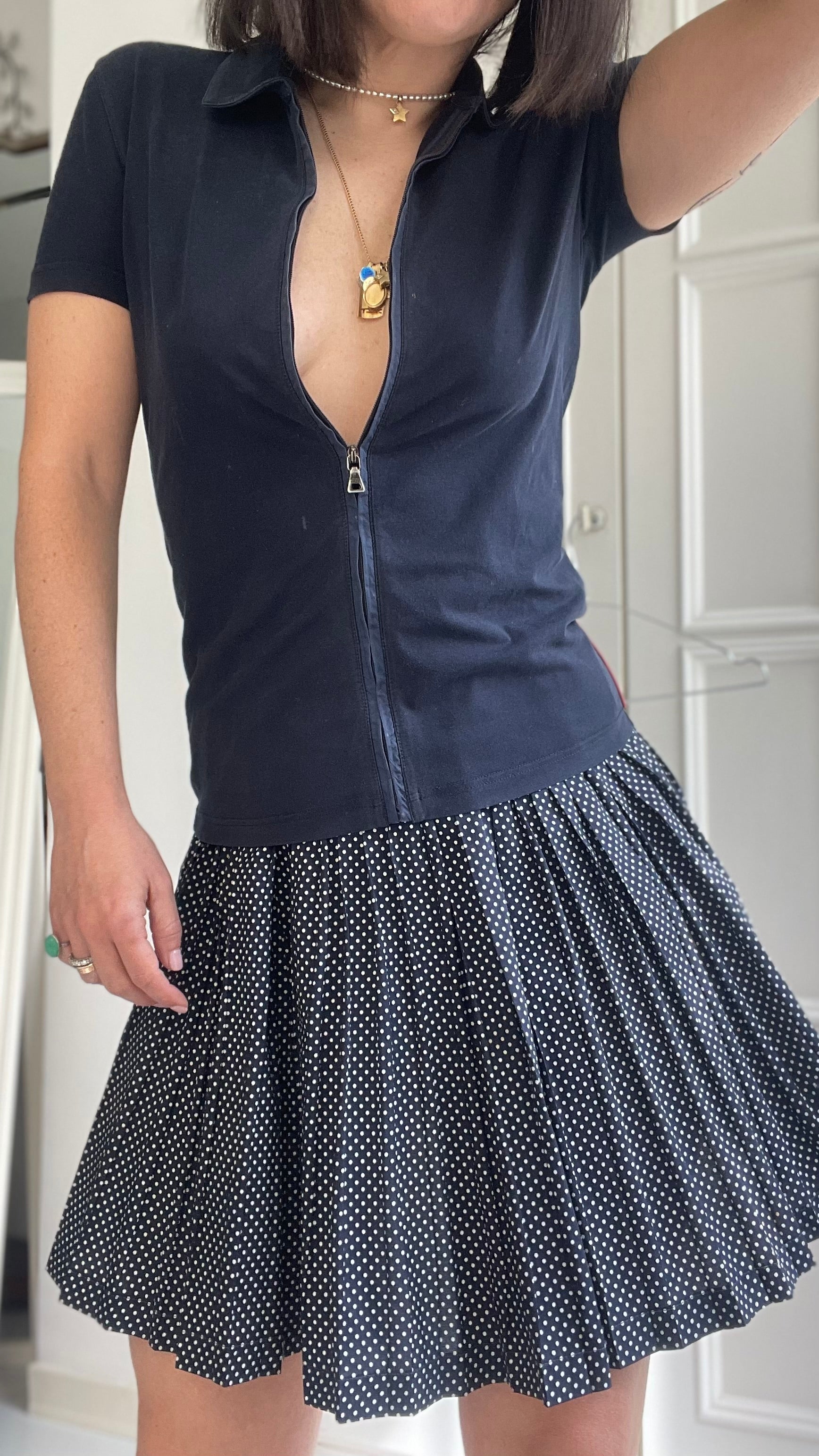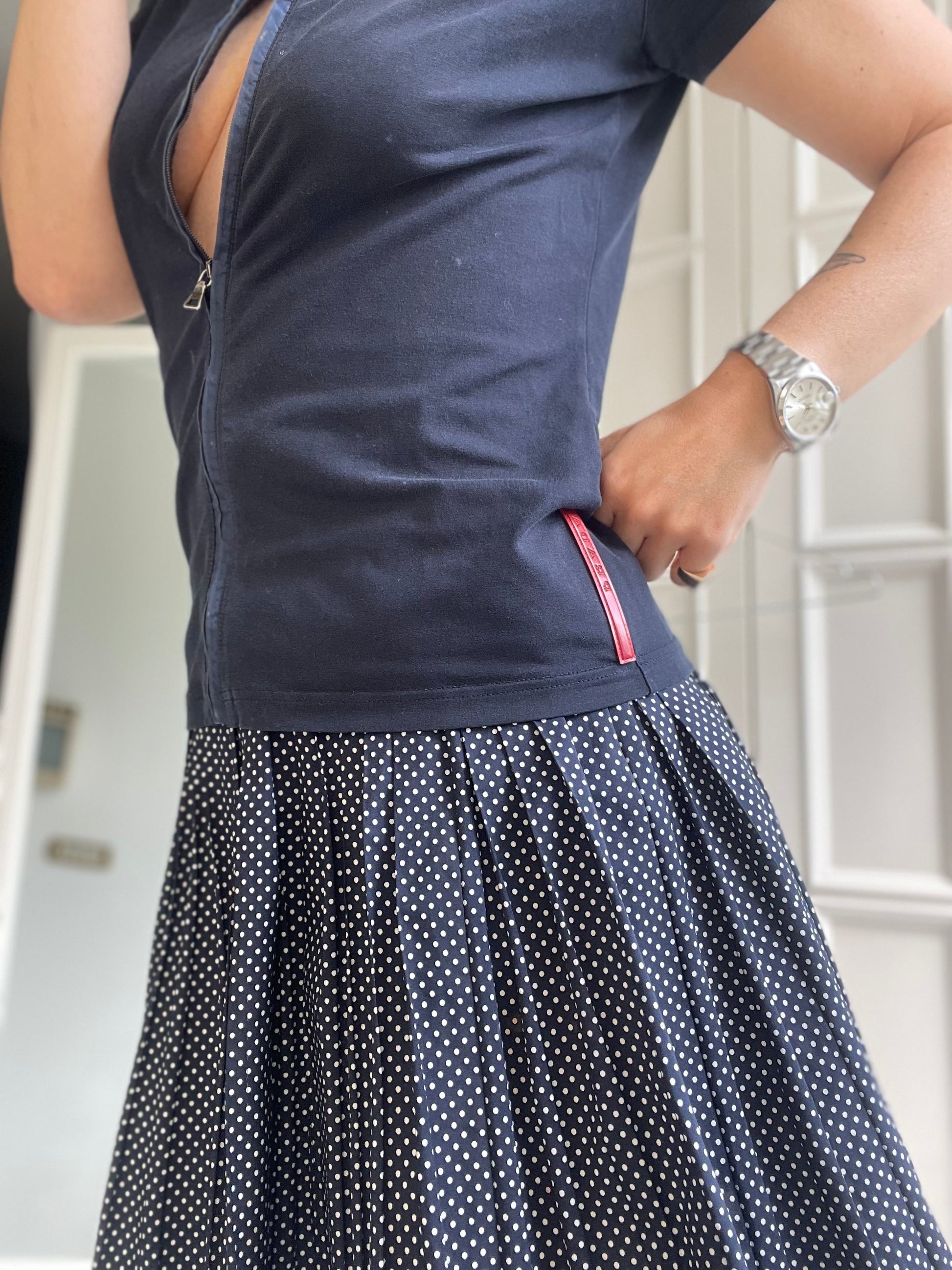 Polo Prada vintage colore blu con colletto e zip sulla parte anteriore