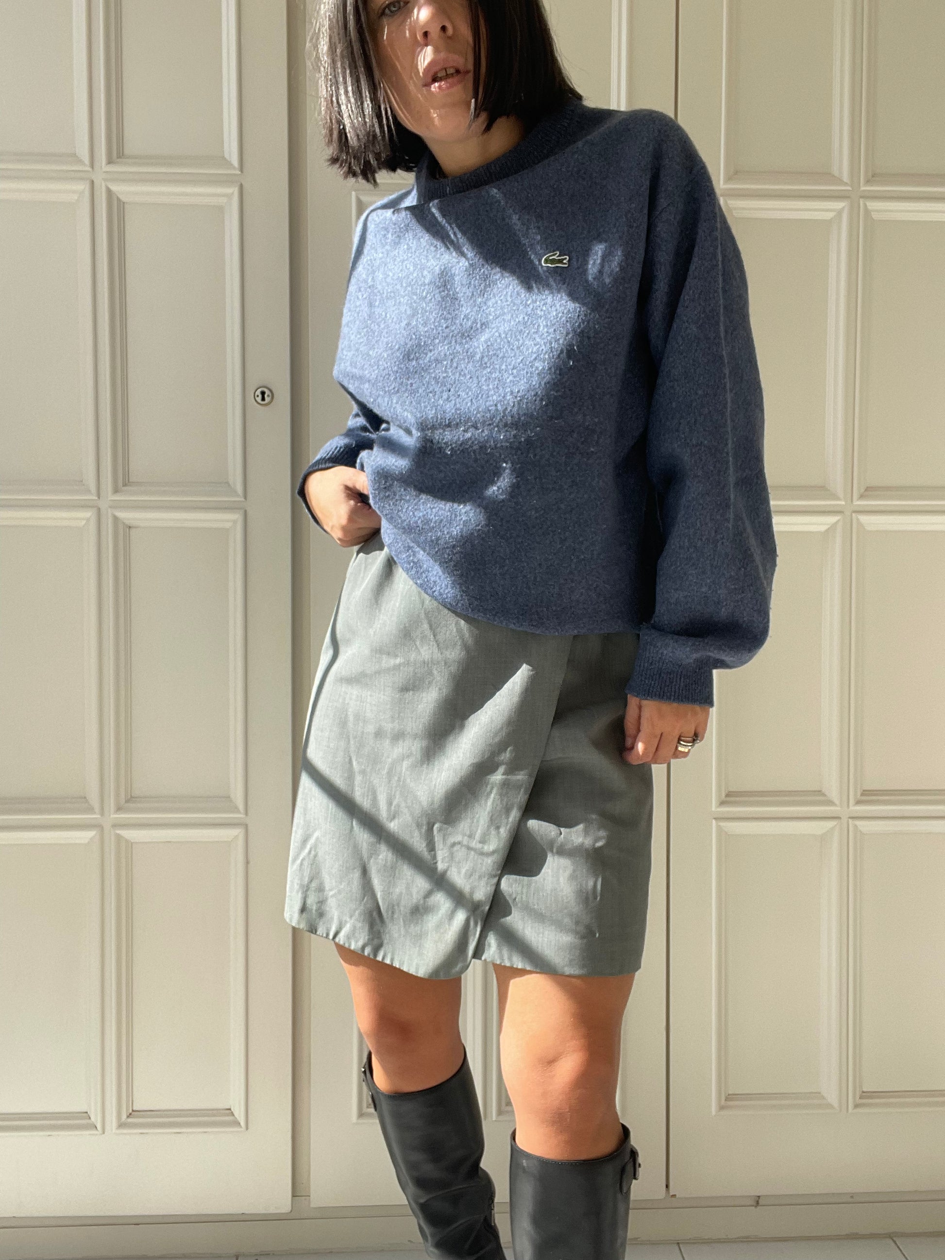 Maglione vintage Lacoste con collo a tarallo in pura lana vergine color azzurro carta da zucchero