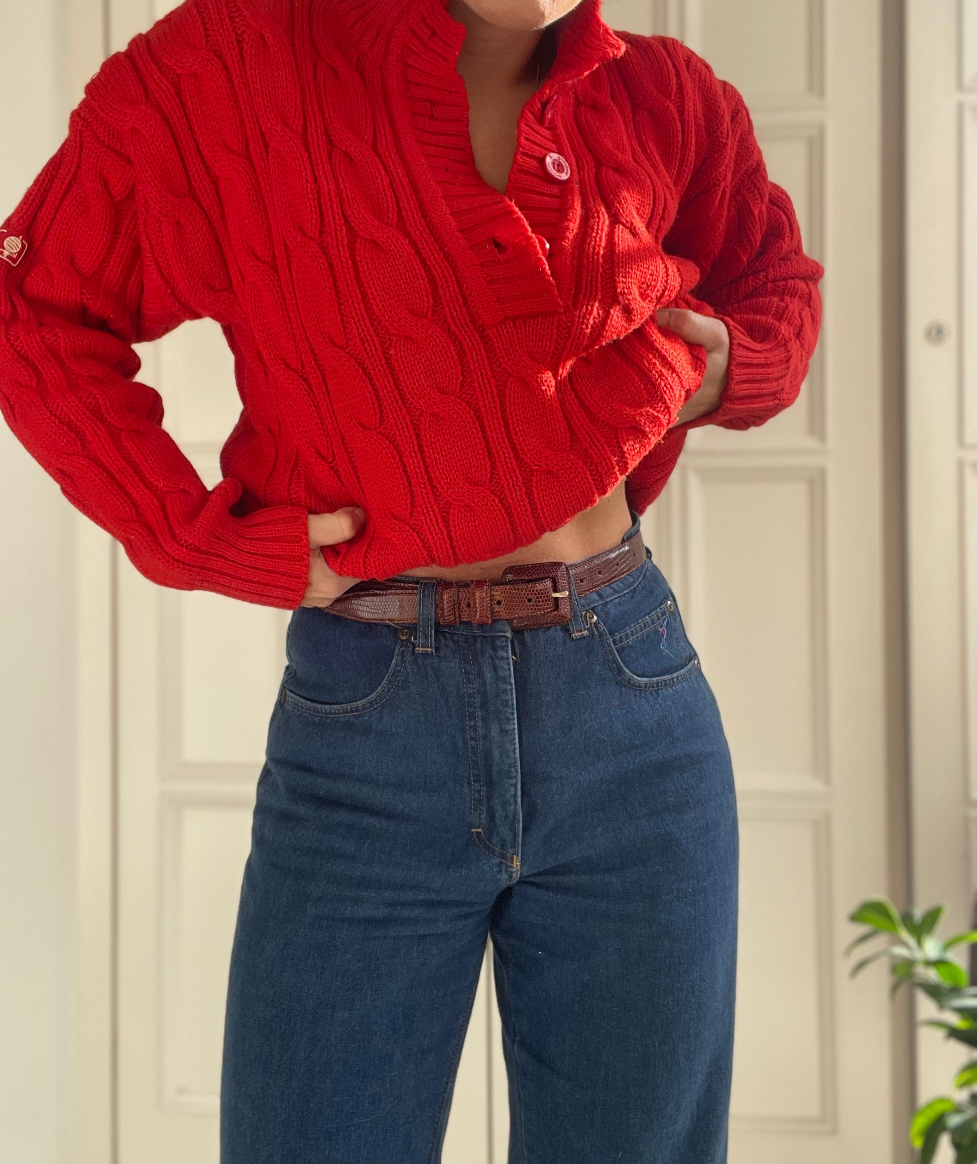 Maglione vintage MARINA Y con collo a polo in pura lana color rosso
