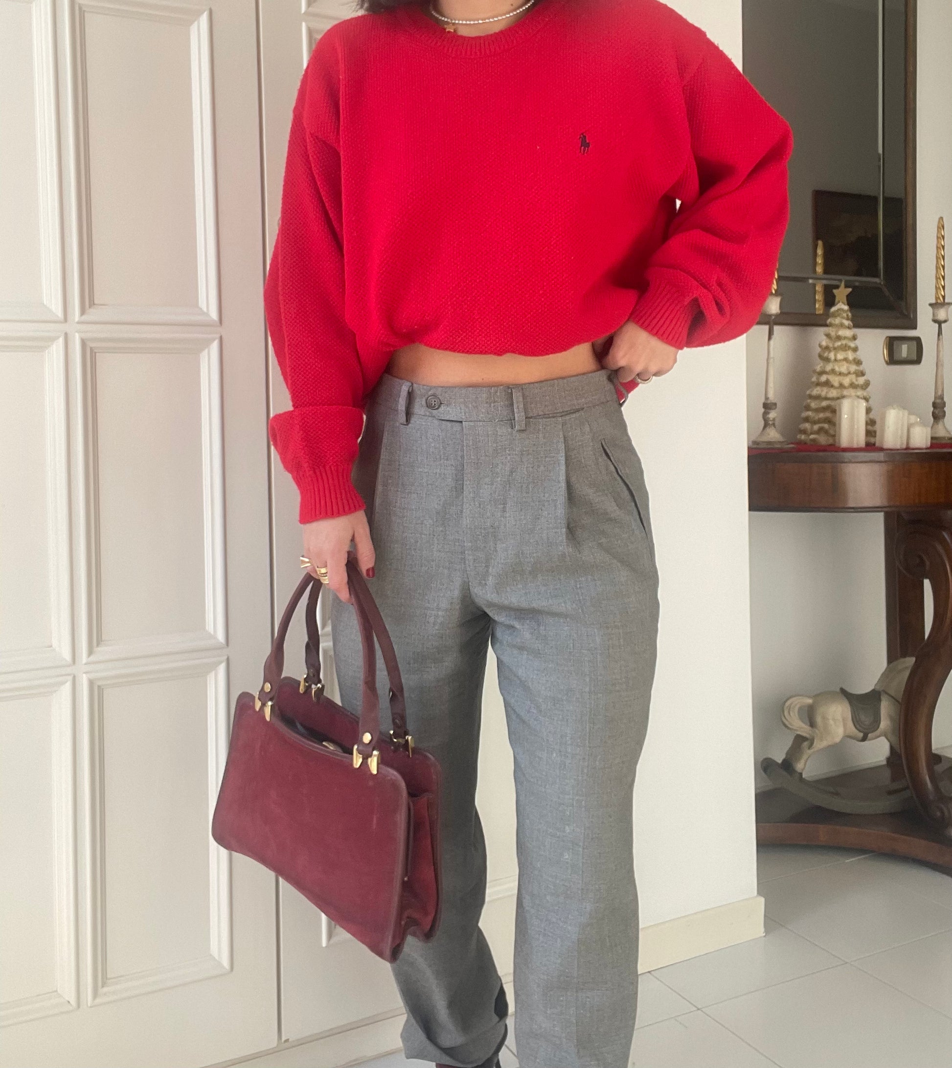 Maglione vintage Ralph Lauren in pura lana color rosso