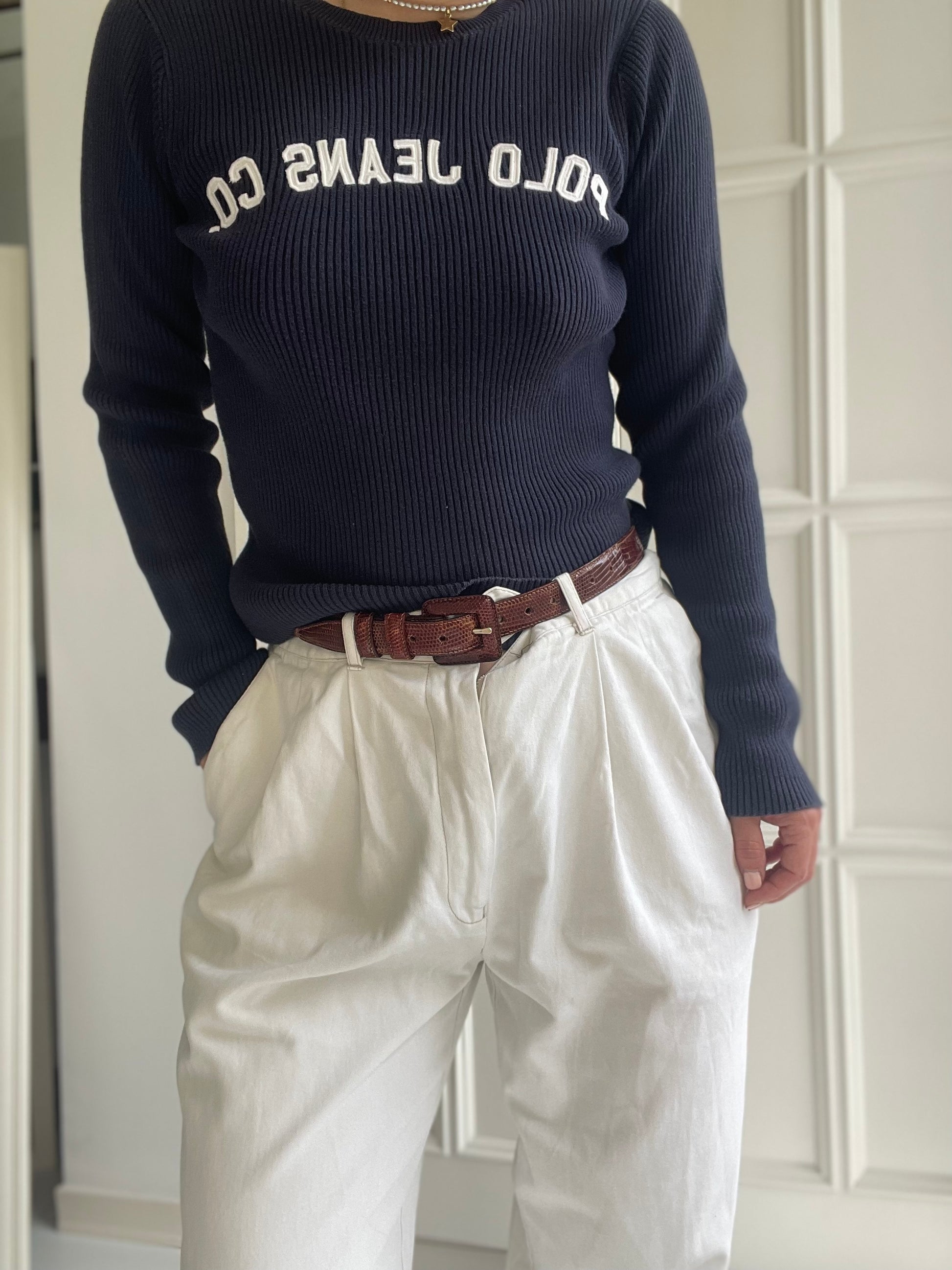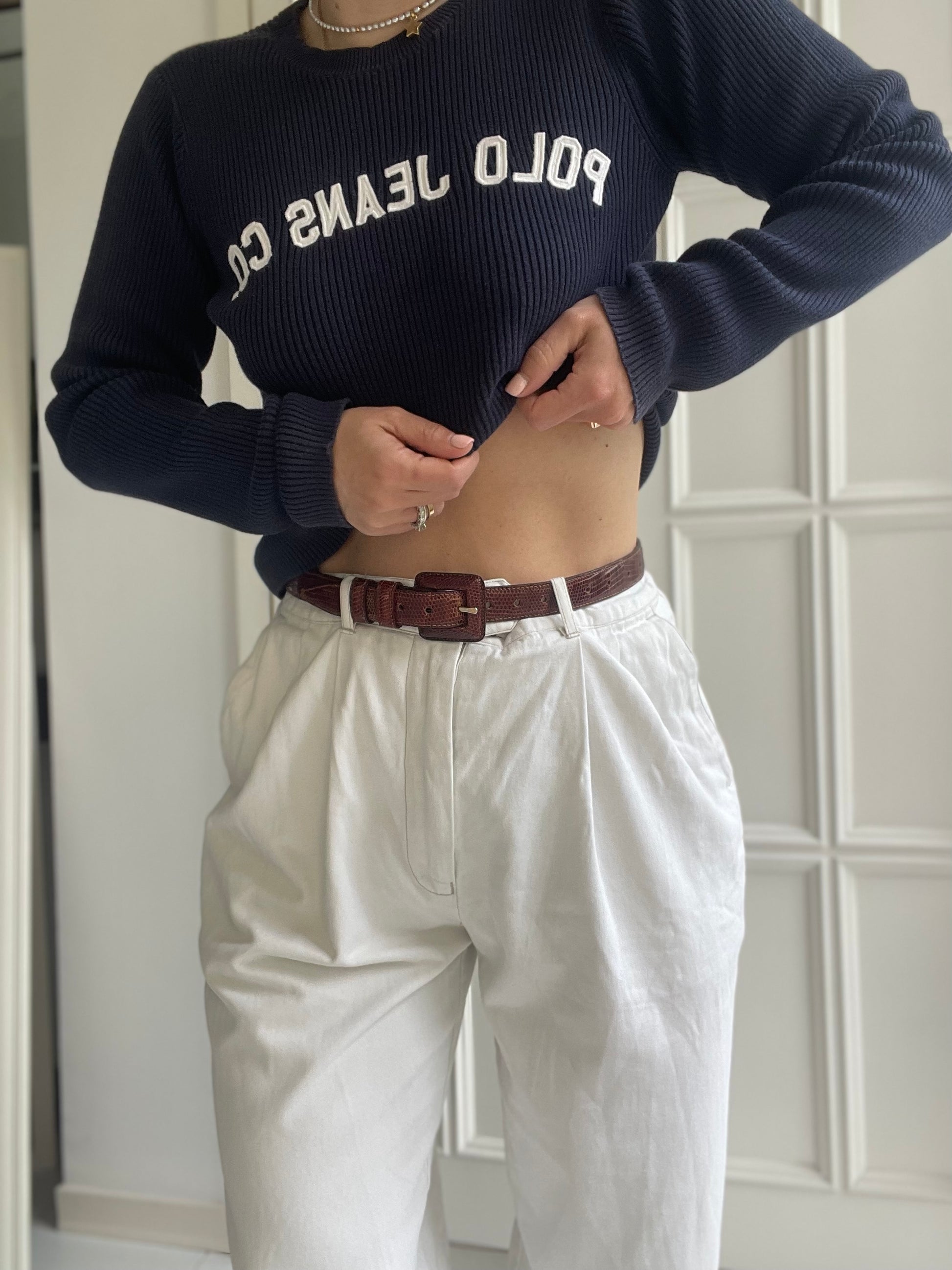 Maglione vintage RALPH LAUREN in puro cotone, color blu .