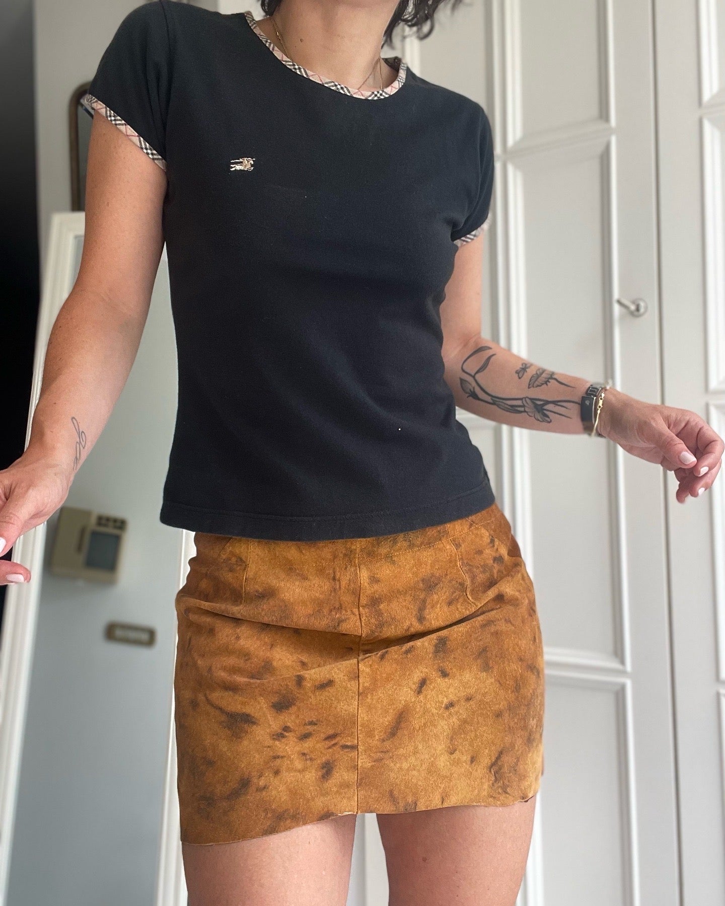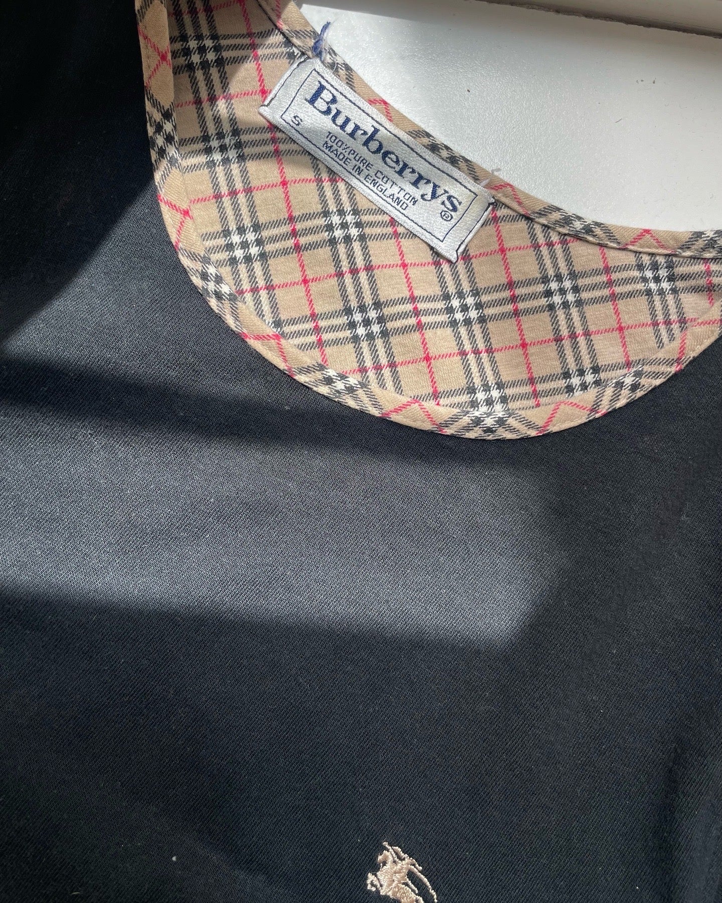 T-shirt Vintage Burberry in puro cotone con i profili nel tipico check