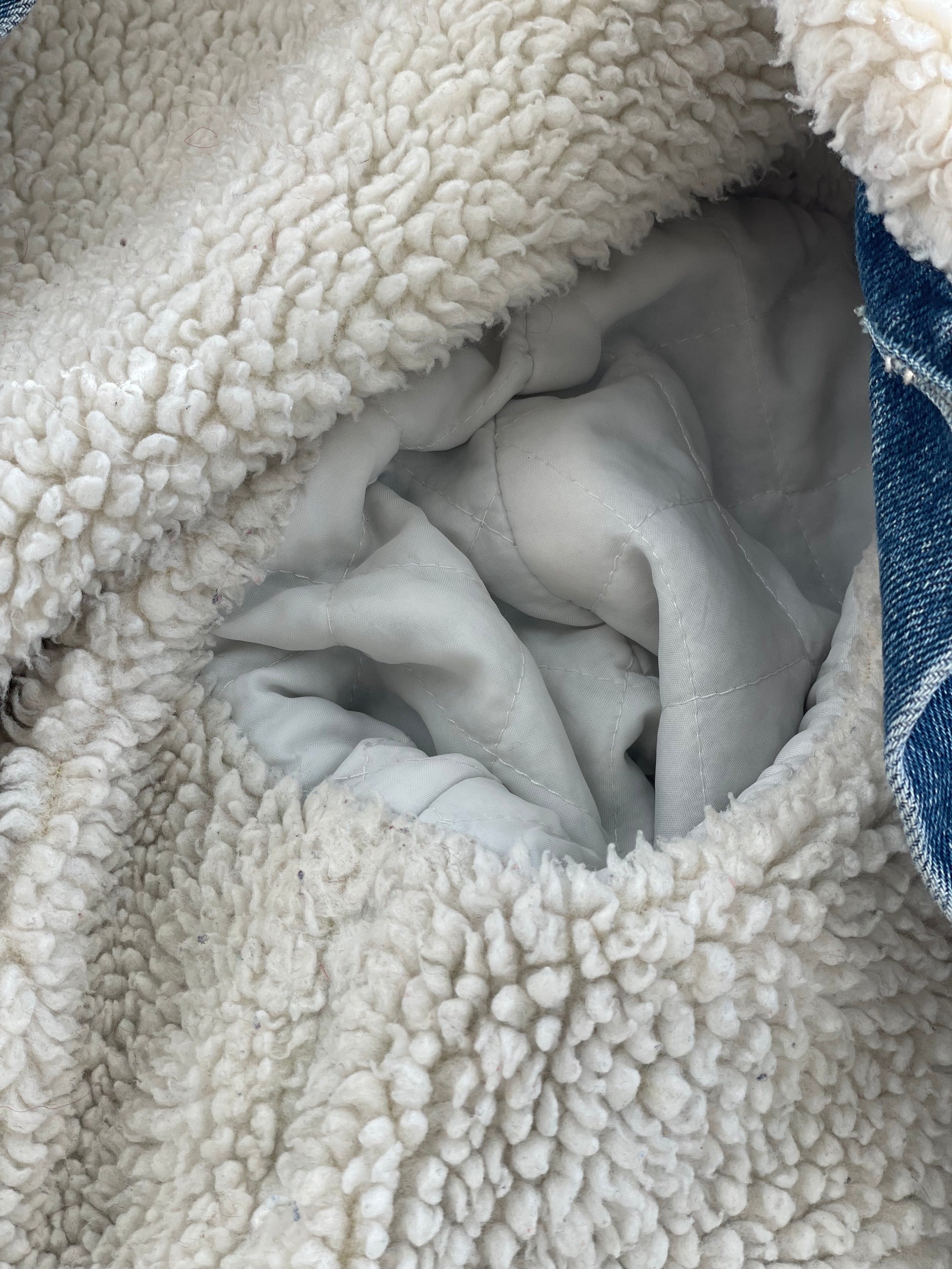 Giacca di jeans LEVI'S vintage con imbottitura sherpa, originale Made in USA,tag rosso e tela sostenuta