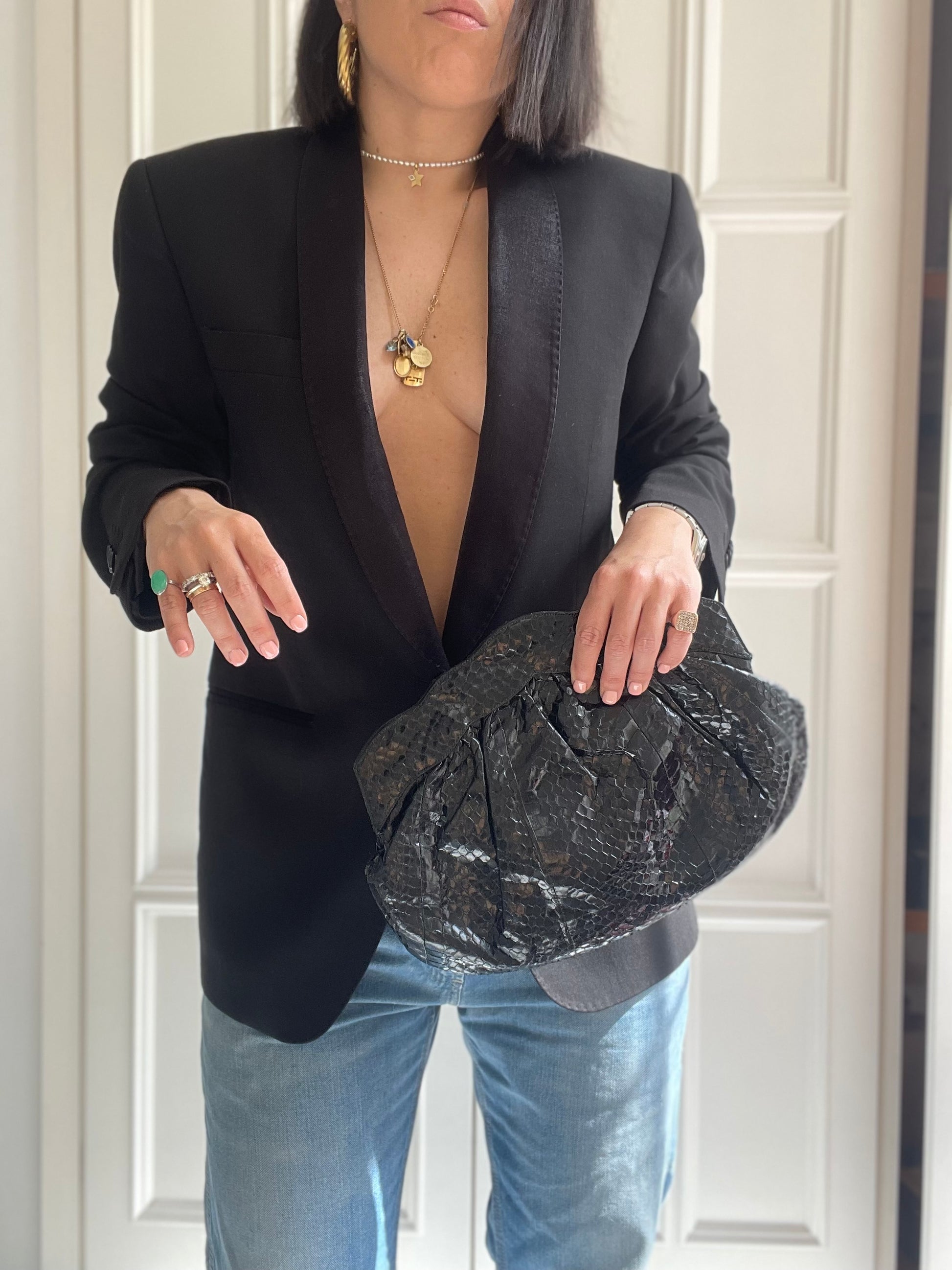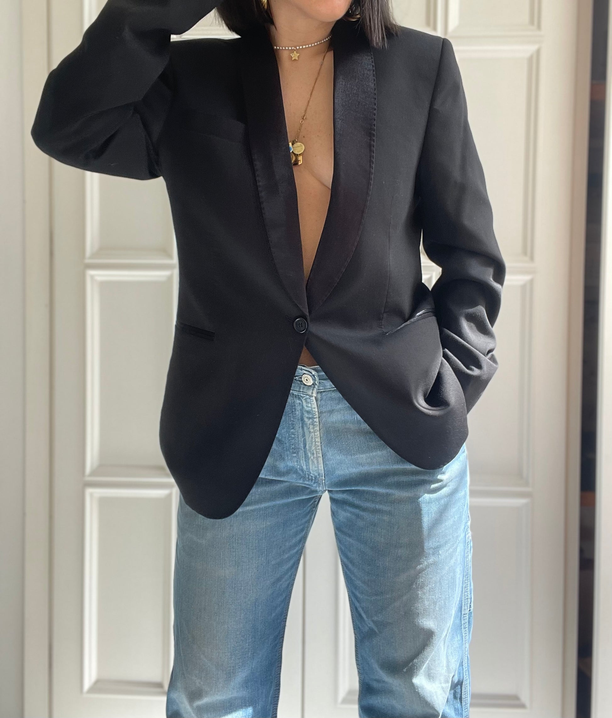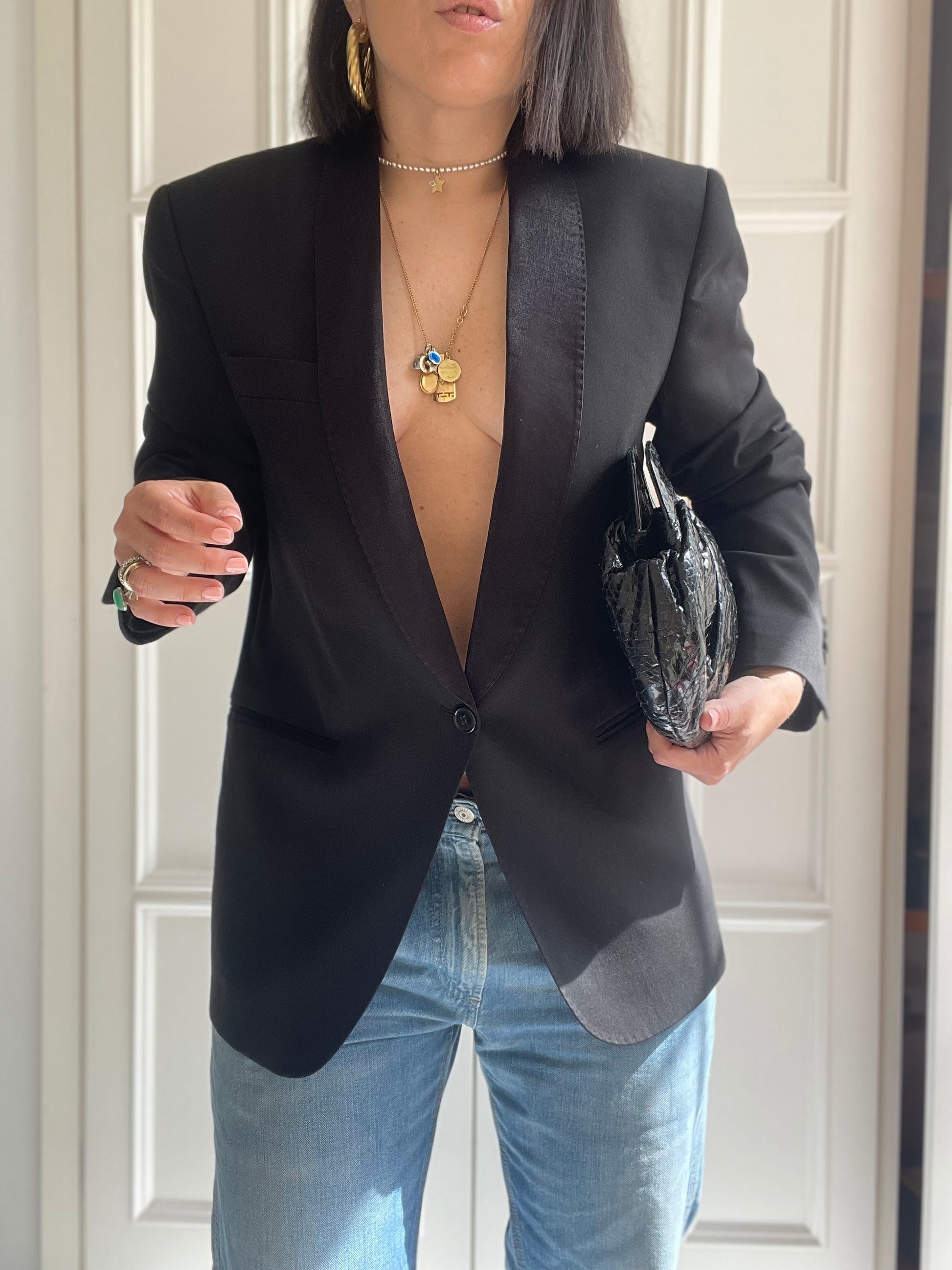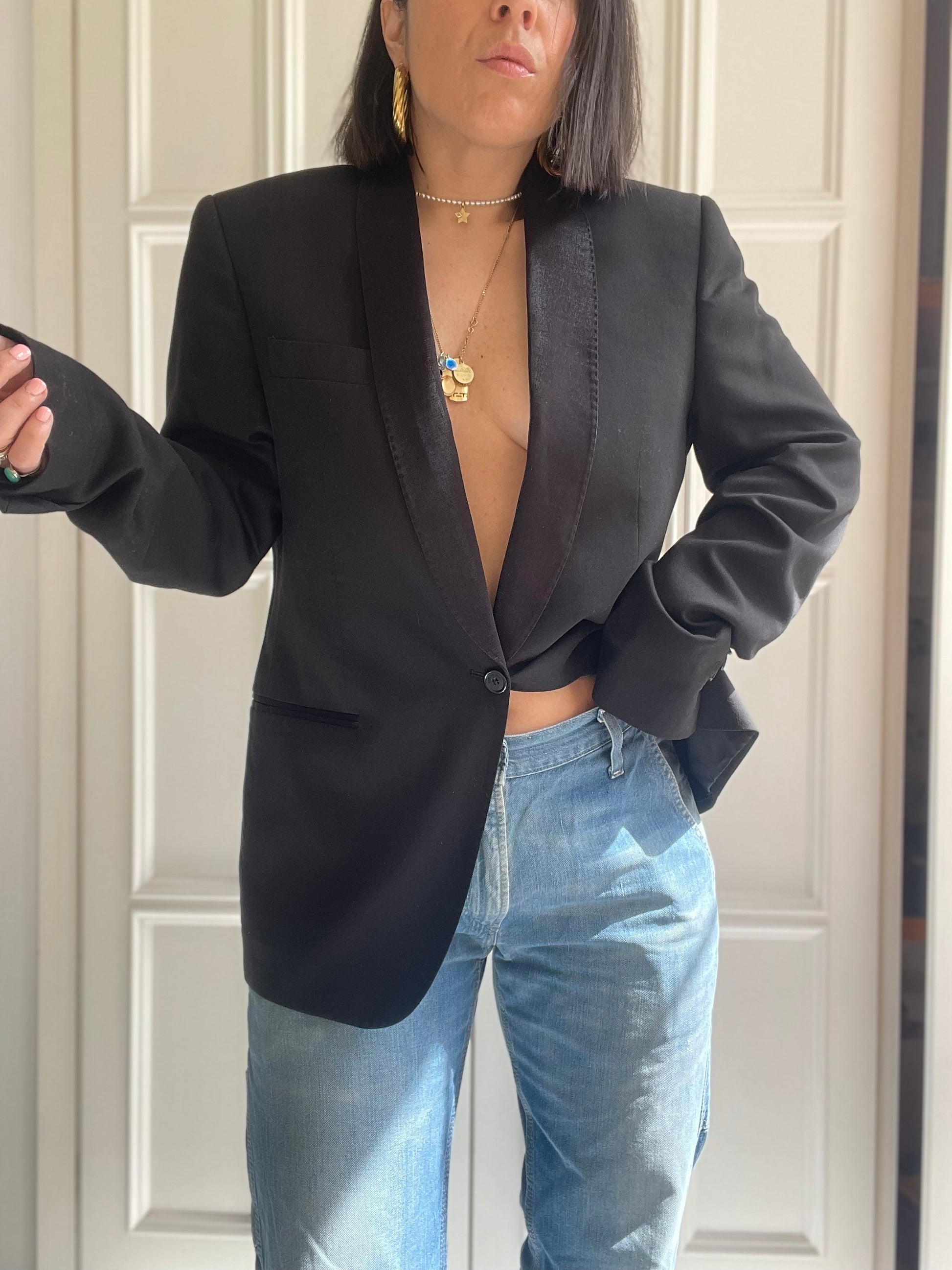 Blazer da smoking colore nero ,sartoriale è molto strutturato con collo in satin