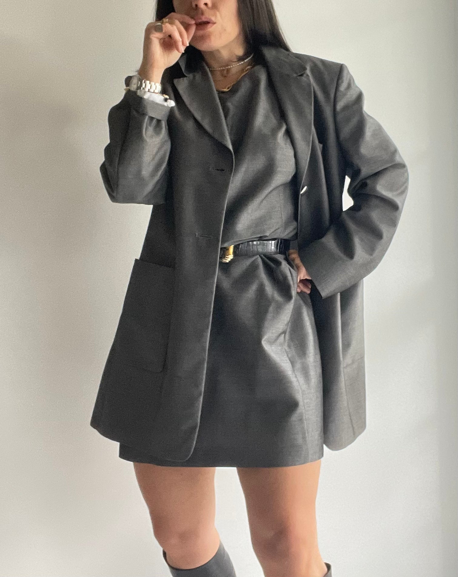 VINTAGE ITALIAN WOOL BLEND TWO PIECES DARK GREY SET
